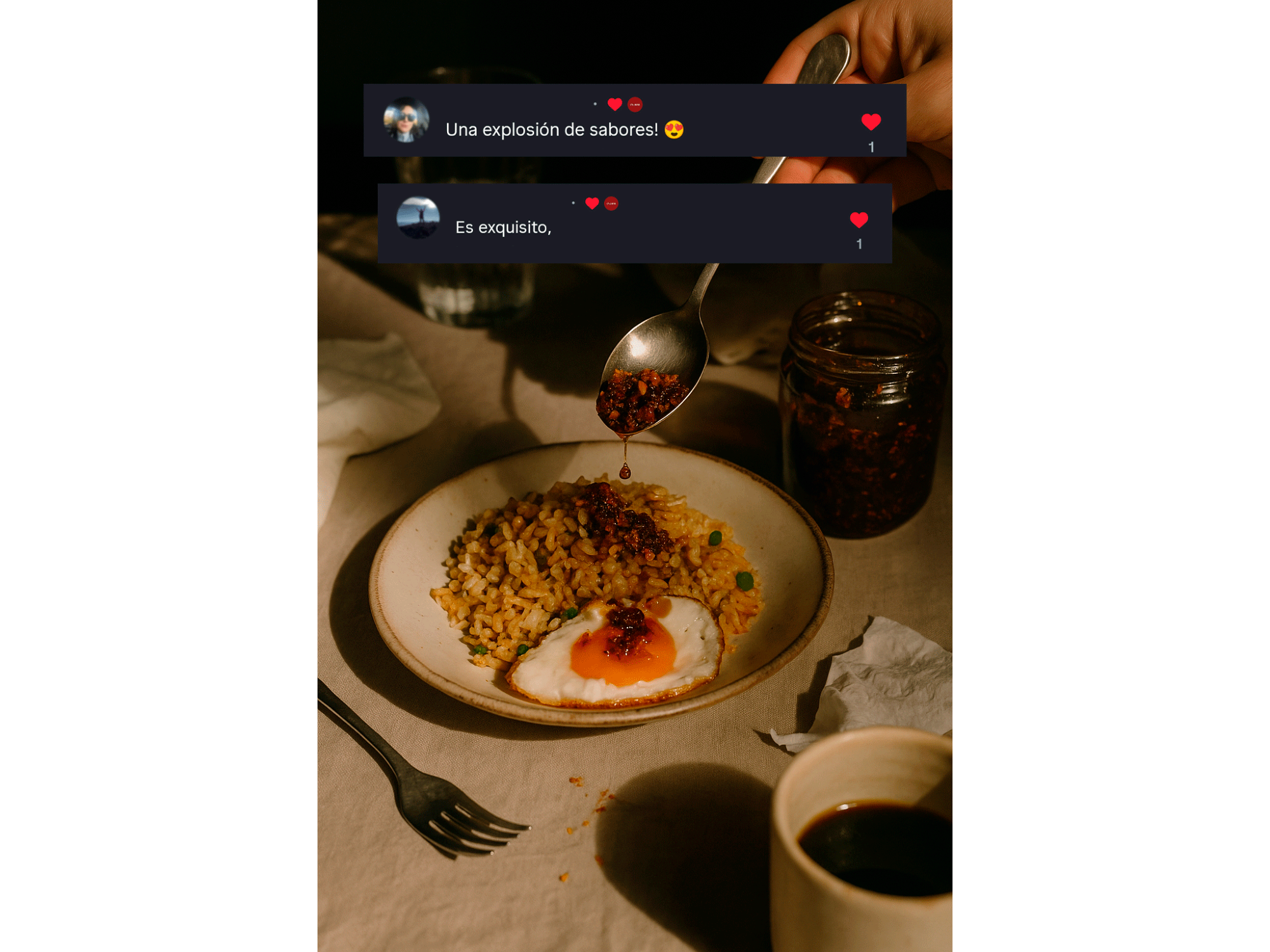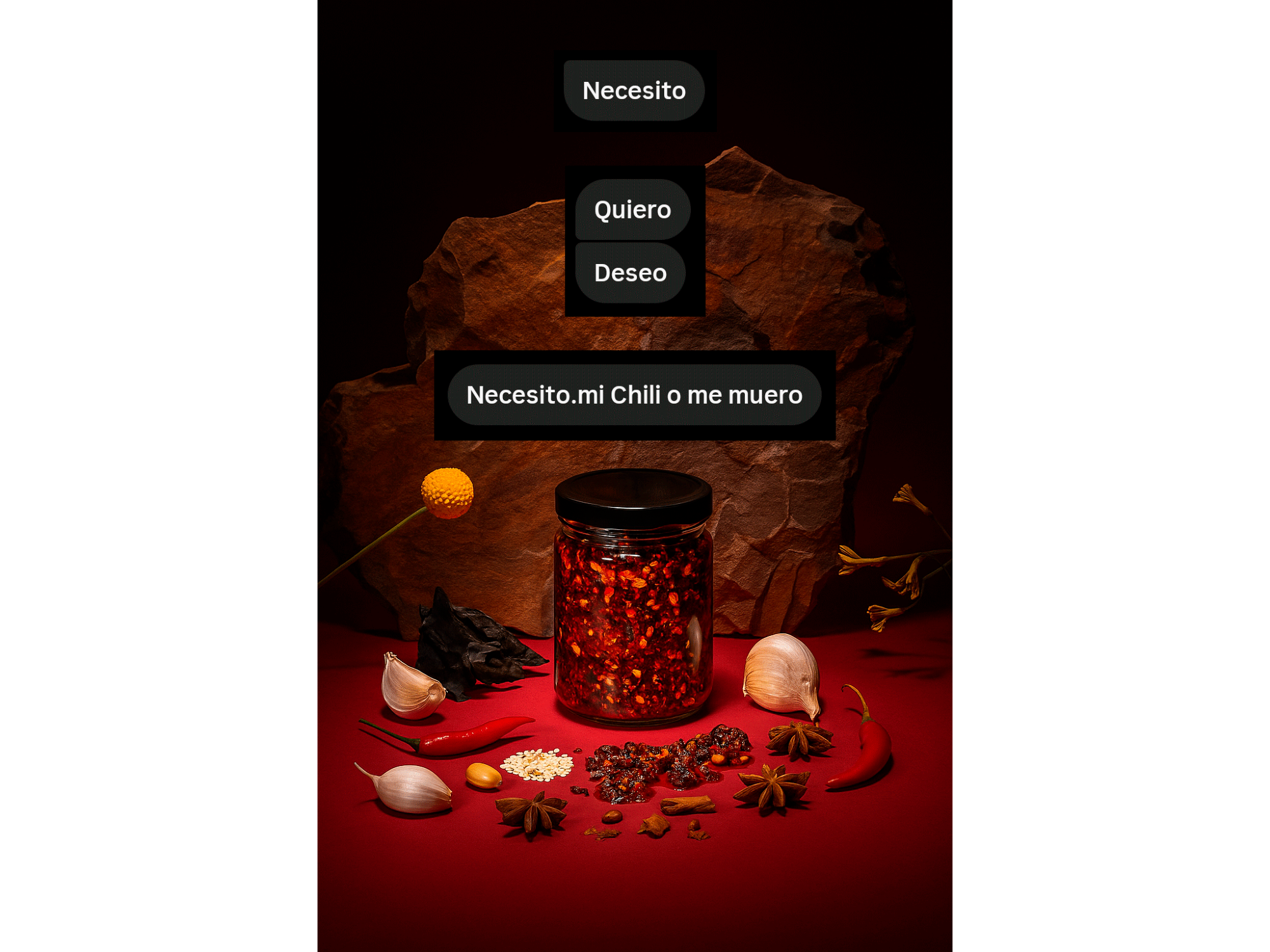 ⭐Una receta original de kokumi: Umami, crujiente y picante. Con notas tostadas, ahumadas y un toque especiado que persiste sin ser agresivo. Ingredientes de todo el planeta, reunidos en una sola cucharada fusionando sabores y aromas para crear una salsa adictiva, que es ideal para absolutamente TODO.