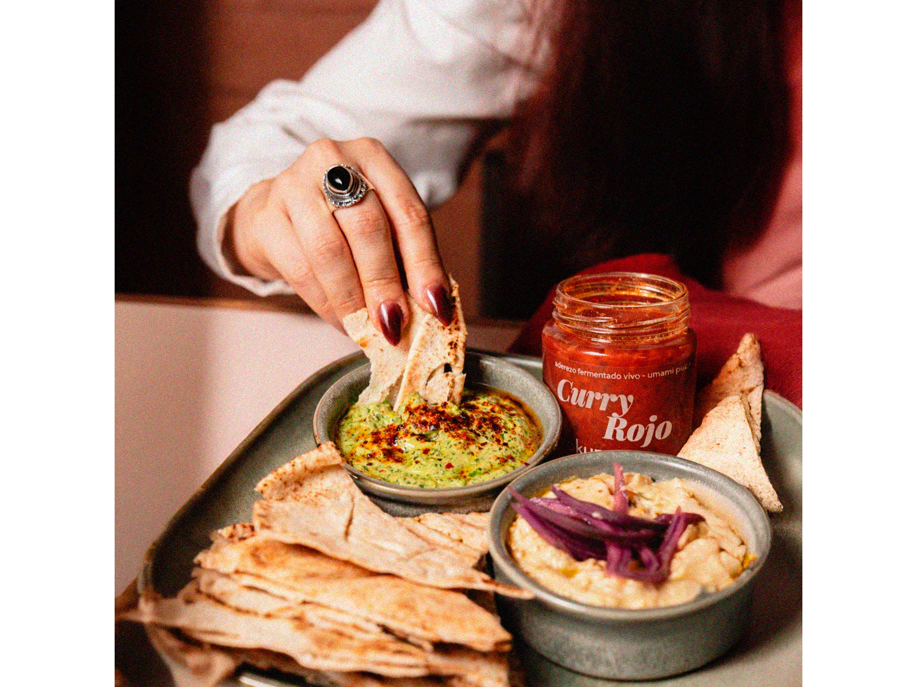 INGREDIENTES: Ají chaotian, ají cayena, cebolla, ajo, lima, jengibre y cúrcuma fresca, miso, pasta de camarón, pimienta blanca, negra y sichuan. Todo lactofermentado en salmuera.