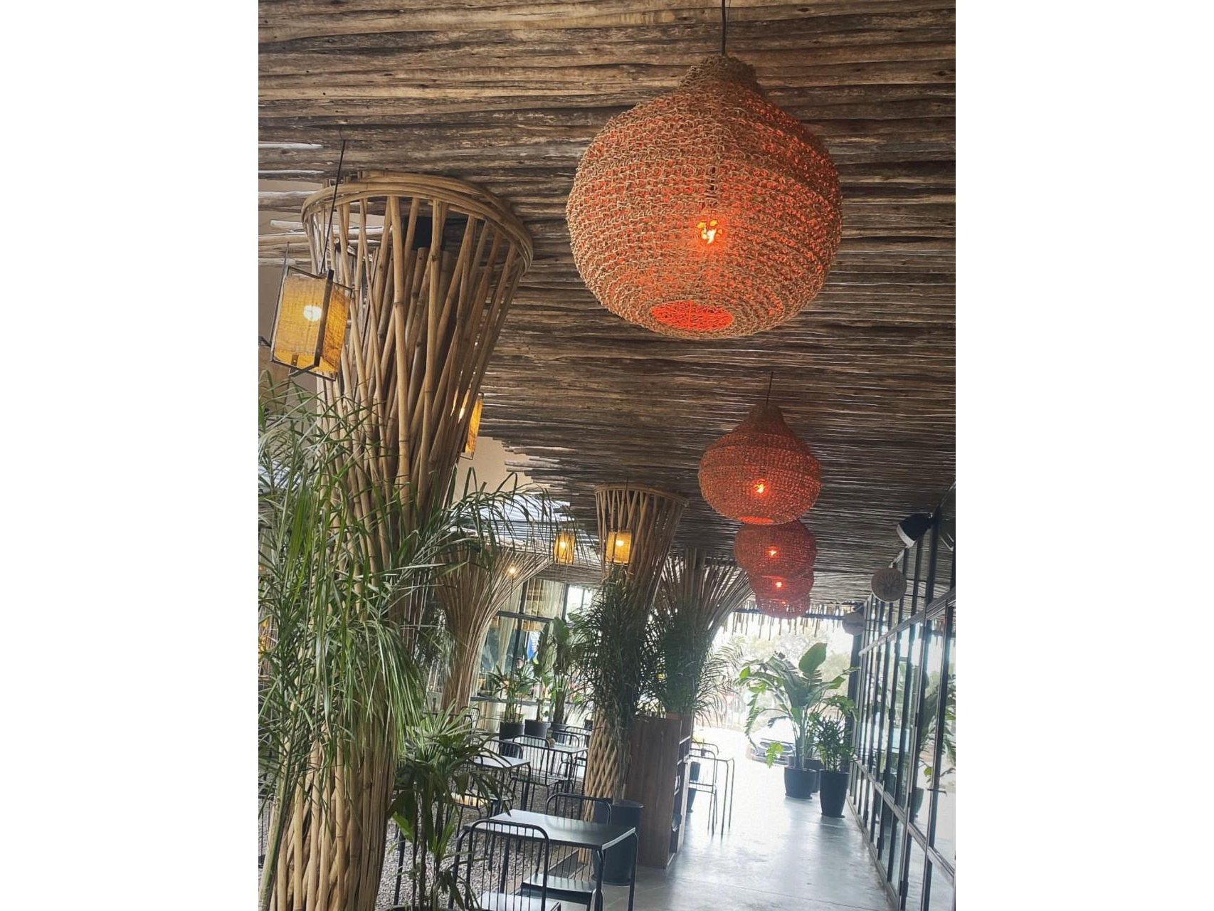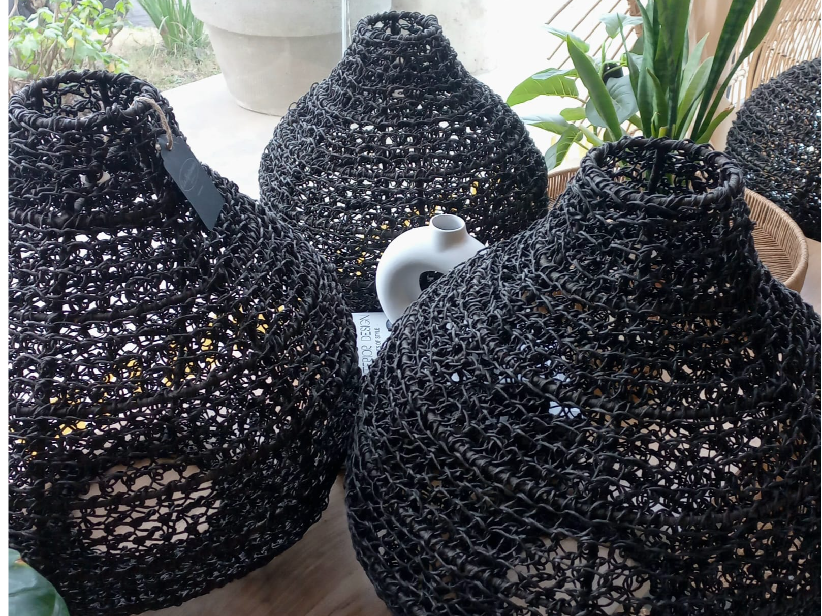 Lámpara Cora Crochet tejida artesanalmente al crochet en hilo Kraft de 2mm con una estructura de hierro de 4 mm.