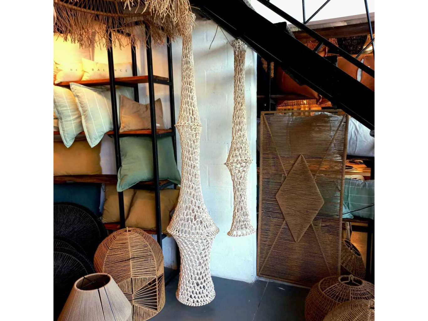 Lámpara Bayahibe de Cordón de Polipropileno con aros de hierro de 4mm. Tejida artesanalmente al crochet