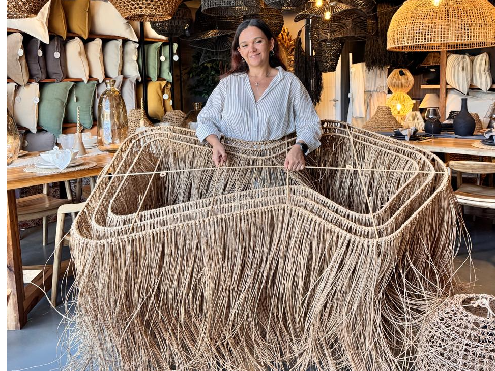 Lámpara DistintaLámpara Distinta tejida artesanalmente en hilo kraft de 2mm, con casi 4000 mtrs de hilo. Una locura, ideal mostradores y restaurantes. 75 cm de alto x 80 en su parte mas ancha y 1,50 de largo para 2 luces$385.000 Observaciones 0 / 150
