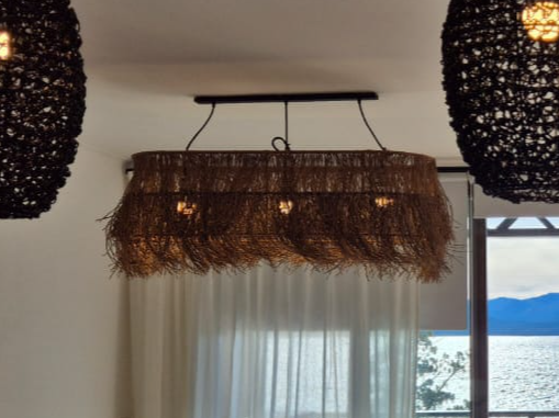 Lámpara Hawaii tramada artesanalmente en hilo Kraft con una estructura de hierro de 1.50mtrs de largo!