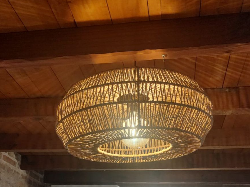 Lampara GorditaLámpara Gordita de 80cm y 60cm de estructura de hierro de 5mm tejida artesanalmente en hilo kraft. Disponible en color negro chocolate o tostado. Presentaciones Seleccioná una opción.Lampara Gordita 60cm$120.000Lámpara Gordita 80cm$138.000 Observaciones 0 / 150