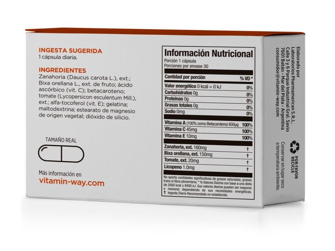 Bronsol 30 Cap- VITAMINWAY Compartir por WhatsApp Copiar enlace -Favorece la pigmentación de la piel. · -Ayuda a proteger la piel del efecto nocivo de la radiación UV. -Aporta antioxidantes que previenen el foto-envejecimiento$9.645,24$4.822,62 50% OFF Observaciones 0 / 150 Encontrá productos relacionados PROMOCIÓN (29)
