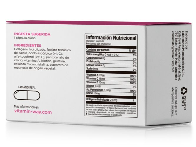 Colageno+Calcio -VITAMINWAY Compartir por WhatsApp Copiar enlace -Ayuda a fortalecer cabello, piel y uñas. -Ayuda a aumentar la elasticidad de la piel. -Beneficioso en casos de flacidez. -Aporta antioxidantes que ayudan a demorar envejecimiento cutáneo. Presentaciones Seleccioná las opciones que quieras.30 cap$6.674,09$3.337,05 50% OFF 60 cap$12.202,80$6.101,40 50% OFF Observaciones 0 / 150 Encontrá productos relacionados PROMOCIÓN (29)