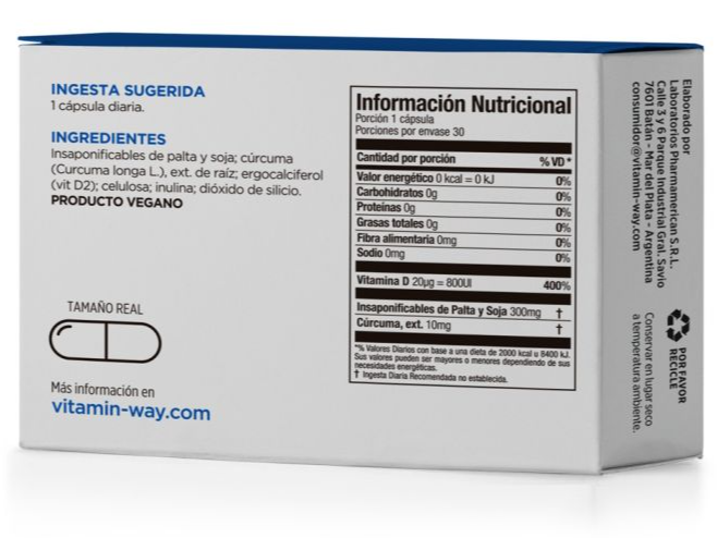 Insaponificable De Palta Y Soja 30Cap-VITAMINWAY Compartir por WhatsApp Copiar enlace -Colabora con el alivio de las molestias articulares. -Favorece una mejor movilidad en casos de desgaste articular. -Ayudan a preservar la integridad del cartílago en las articulaciones. -Contribuye con la densidad y fortaleza ósea.$12.177,28$8.524,10 30% OFF Observaciones 0 / 150 Encontrá productos relacionados PROMOCIÓN (29)