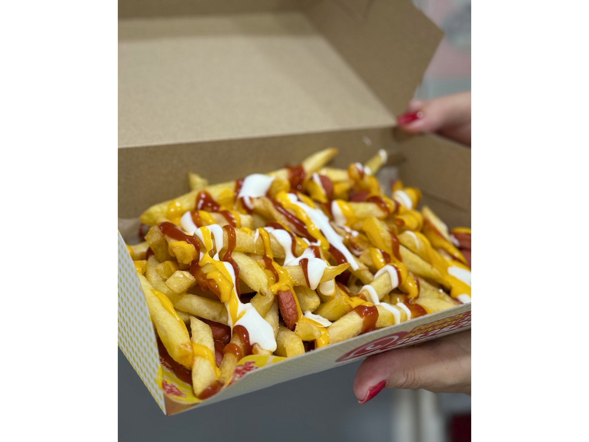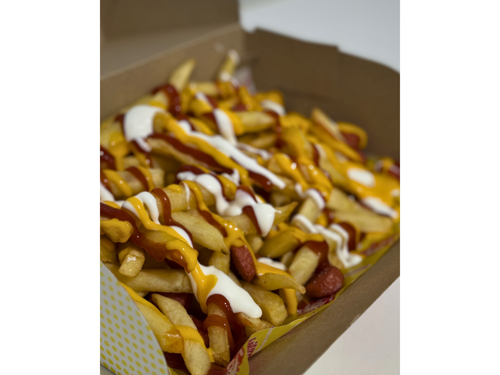 SALCHIPAPA Compartir por WhatsApp Copiar enlace La porción lleva tres salsa: kétchup, cheddar y salsa blanca. Aclarar en observaciones en caso que la quieras sin cheddar. Presentaciones Seleccioná una opción.PORCIÓN GRANDE$10.000PORCIÓN CHICA$7.000 Observaciones 0 / 150