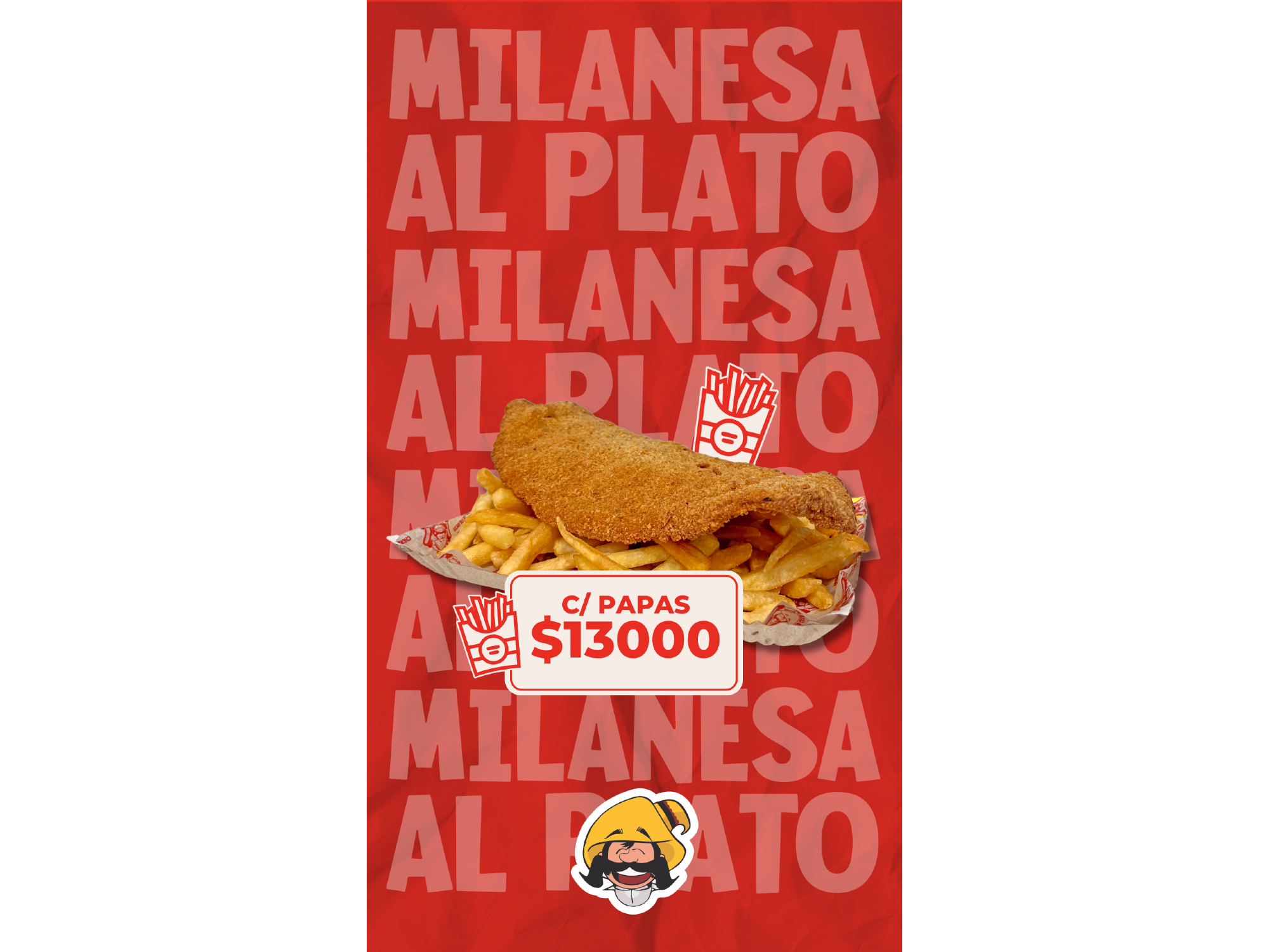 MILANESA Compartir por WhatsApp Copiar enlace MILANESA MILANESA (1) MILANESA AL PLATO CON PAPAS FRITAS $13.000