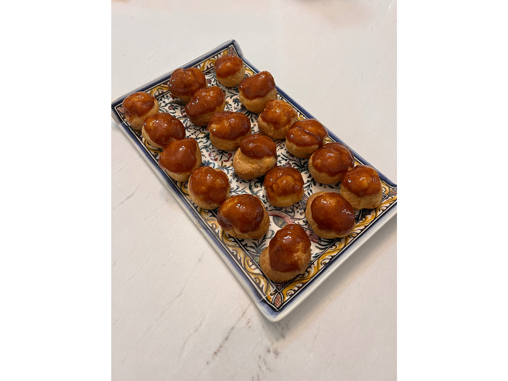 Profiteroles (varios sabores) Compartir por WhatsApp Copiar enlace Masa bomba rellena con crema de vainilla hecha con vaina de vainilla. Cubierta con caramelo. 12 unidades. Presentaciones Seleccioná una opción.Rellenos con crema de vainilla natural 12 unidades. 2 unidades en stock $30.000Relleno con crema de limon 12 unidades Sin stock $32.000 Observaciones 0 / 150