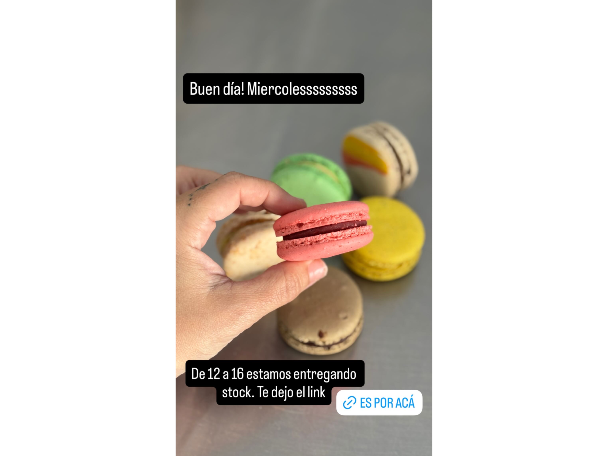 MacaronsDeliciosos y únicos. Podes elegir sabores, siempre múltiplo de 2! Sabores: Pistacho Frambuesa Maracuya Coco y lima Dulce de leche Chocolate Presentaciones Seleccioná una opción.X 4 Sin stock $16.000X 8$30.000X 12$45.000 Observaciones 0 / 150