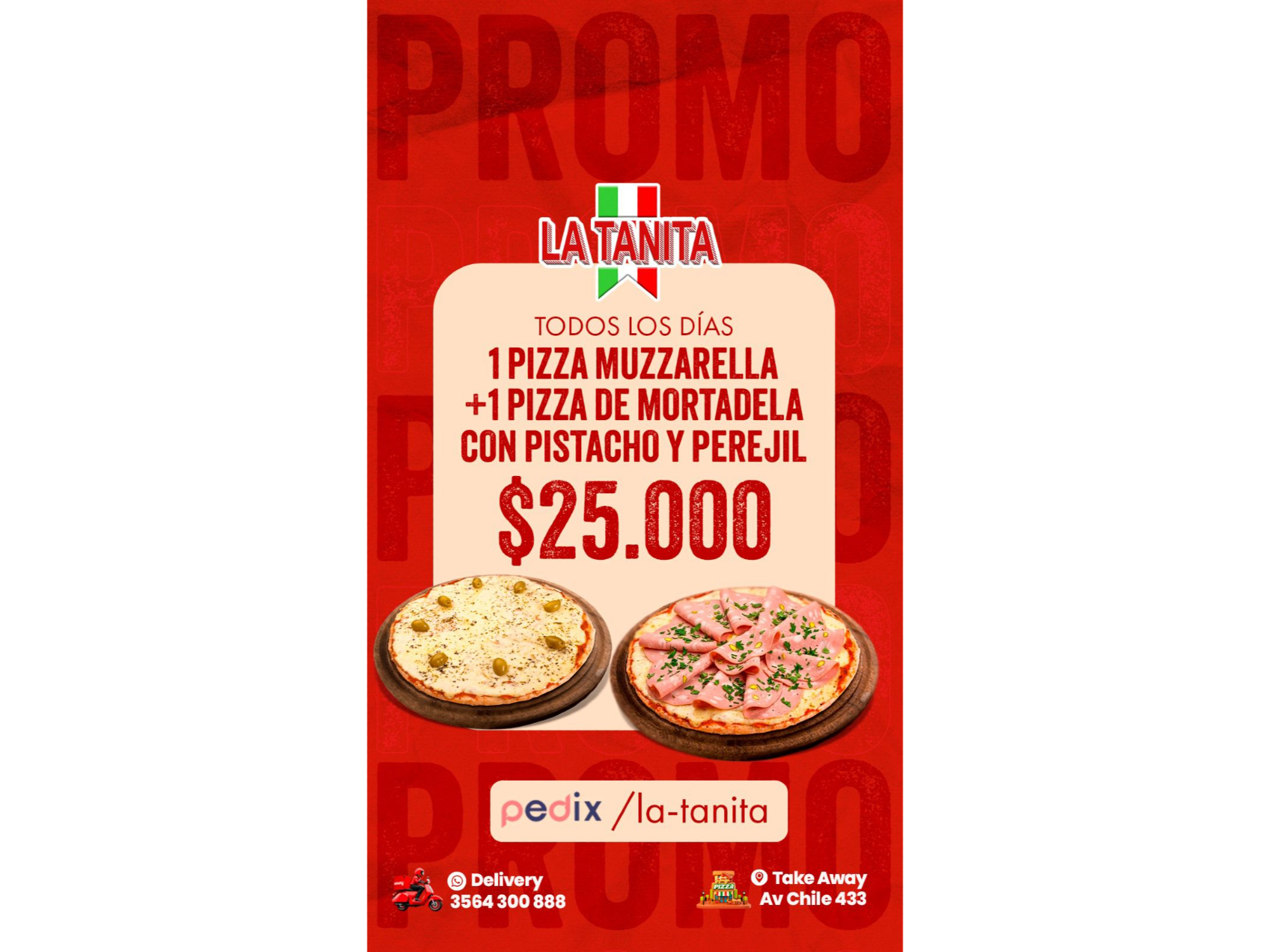 Promo - Muzzarella + Mortadela y Pistachos con Perejil Compartir por WhatsApp Copiar enlace Sin foto$25.000 Observaciones 0 / 150