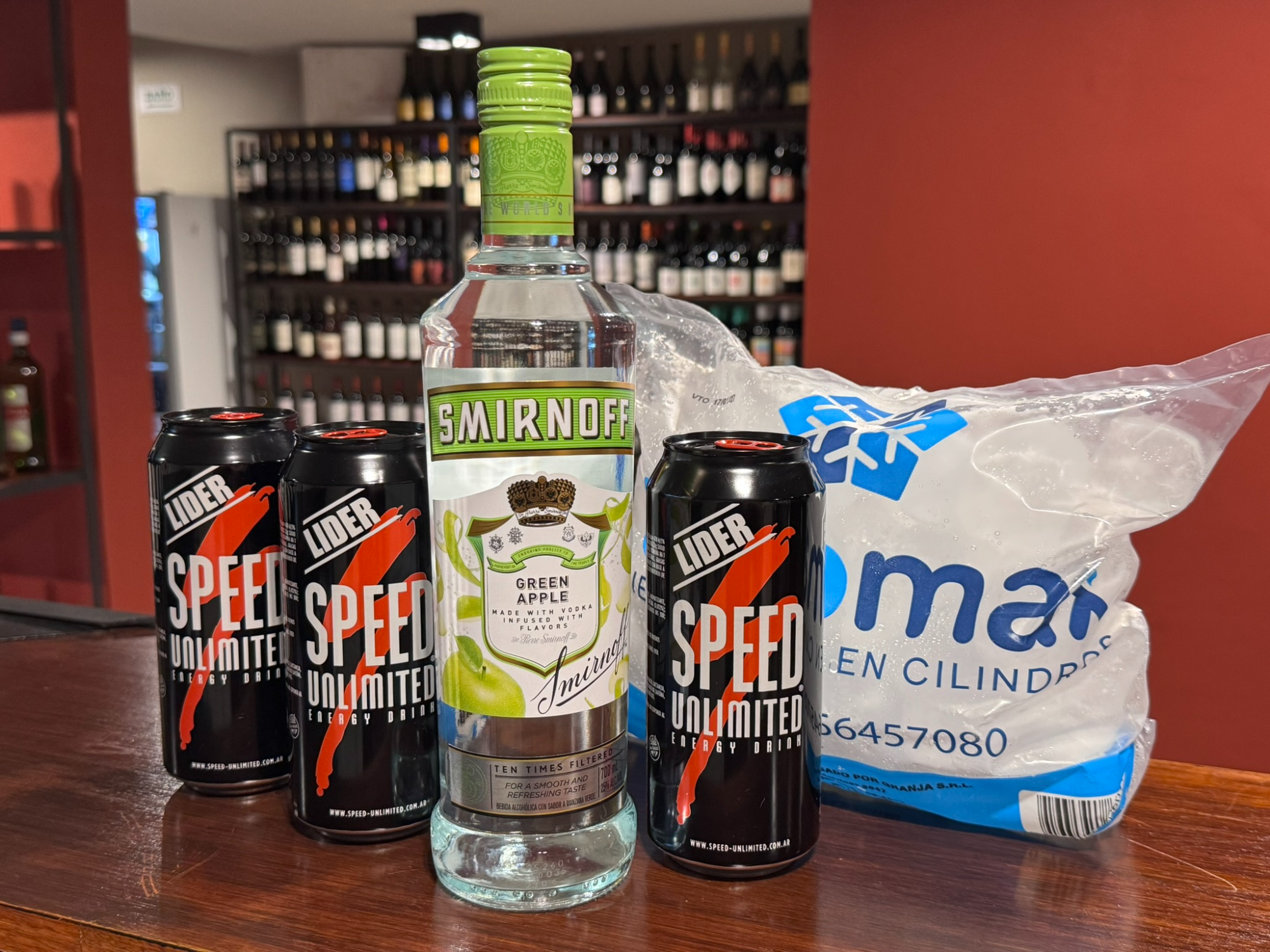 Promo Smirnoff Green Apple Compartir por WhatsApp Copiar enlace Presentaciones Seleccioná una opción.+ 4 Speed Chicos y Hielo$18.500+ 3 Speed Grandes y Hielo$19.500 Observaciones 0 / 150