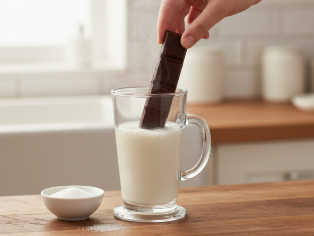 Leche caliente con chocolate en barra