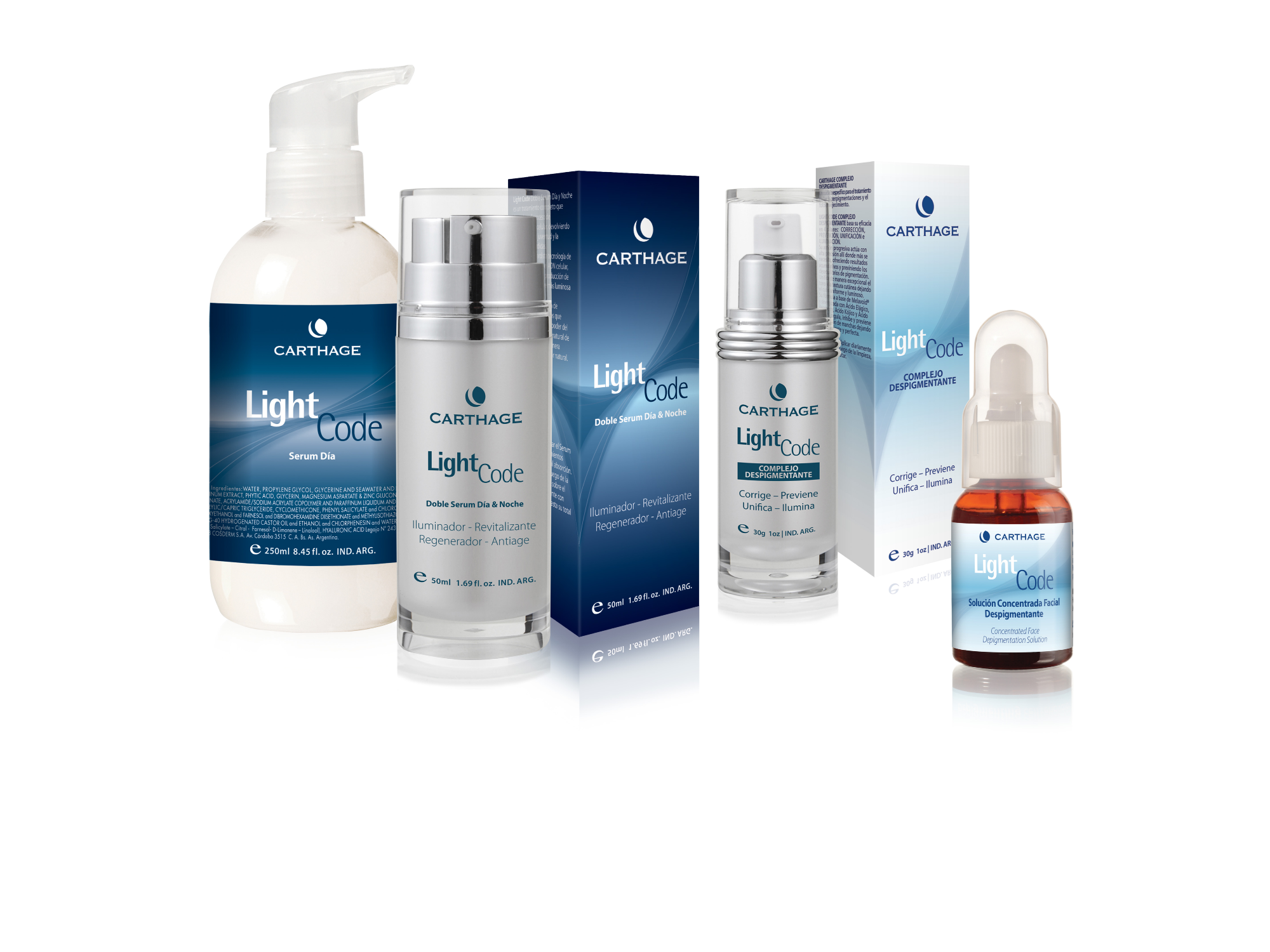 CARTHAGE LIGHT CODE SOLUCIÓN CONCENTRADA FACIAL DESPIGMENTANTE es un serum que reduce, atenúa y difumina las manchas aumentando la luminosidad y unificando el tono de la piel. Su fórmula combina la acción sinérgica de potentes activos como Melavoid®, Ácido Elágico y Uva Ursi que actúan en todas las fases del proceso de pigmentación, convirtiéndose en un tratamiento único para revelar una tez radiante.