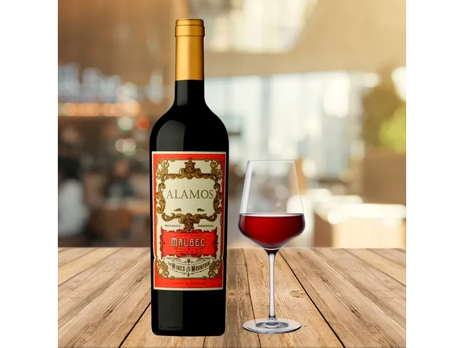 PRUEBA Álamos Malbec es un vino tinto argentino popular de la bodega Catena Zapata y la línea Alamos, conocido por su color púrpura intenso, aromas a frutos negros (cassis, frambuesas) con notas florales y tostadas, cuerpo medio a concentrado y taninos sedosos, ideal para acompañar carnes a la parrilla y pastas, ofreciendo una gran relación calidad-precio. Se produce en Mendoza, Argentina, con 100% Malbec, pasando 6-9 meses en roble francés y americano para aportar complejidad, siendo un vino versátil y representativo del Malbec mendocino.