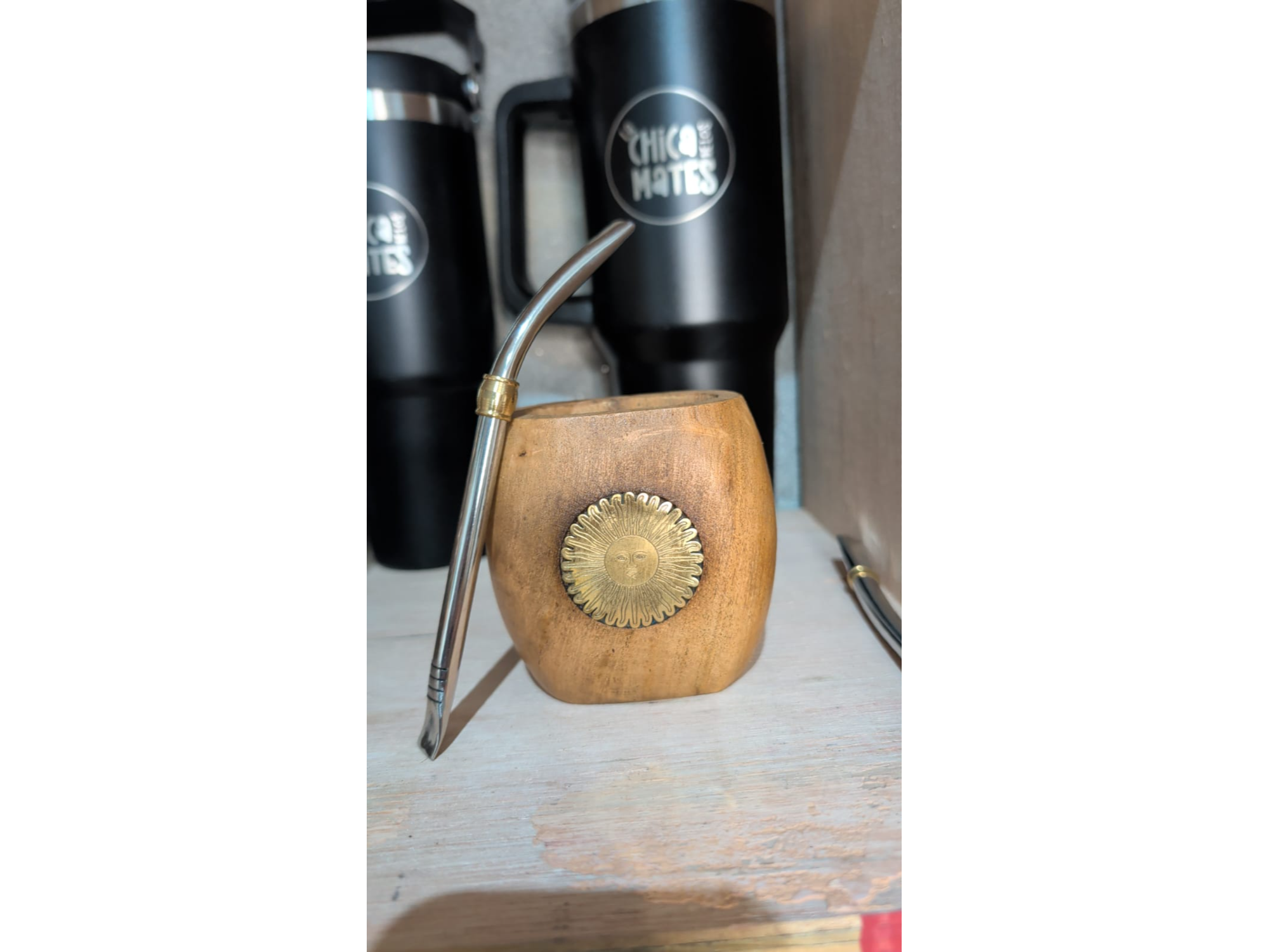Mate Galleta Sol de Mayo Compartir por WhatsApp Copiar enlace Mate Galleta de Madera con Aplique Sol de Mayo de Bronce 4cm diametro. La medida del mate es de 10 de Alto por 8cm de frente.$25.330 Complementos para tu pedido Agregá items adicionales a tu pedido. Bombilla Seleccioná las opciones que quieras.Bombilla Pico Loro Pico Loro Acero Inox $4.500 Observaciones 0 / 150