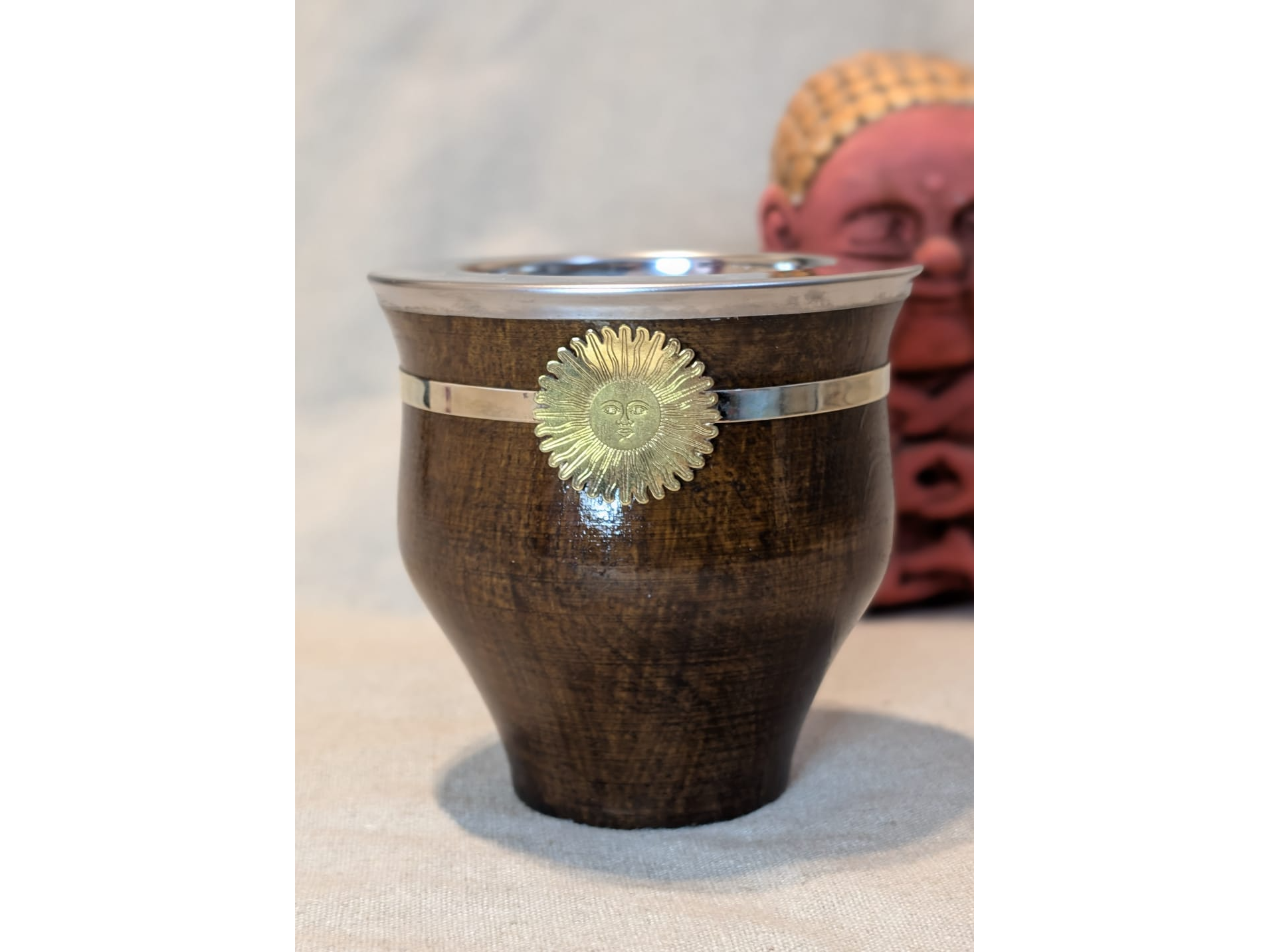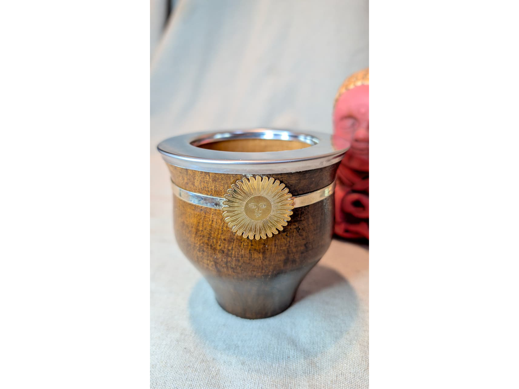 Mate Camionero Sol de Mayo Laqueado Oscuro Compartir por WhatsApp Copiar enlace Mate Camionero de Madera con cinta de Acero de 0,5 cm de ancho y Aplique Sol de Mayo de Bronce. La medida del mate es de 10 de Alto por 8cm de diametro.$22.950 Complementos para tu pedido Agregá items adicionales a tu pedido. Bombilla Seleccioná las opciones que quieras.Bombilla Pico Loro Pico Loro Acero Inox $4.500 Observaciones 0 / 150