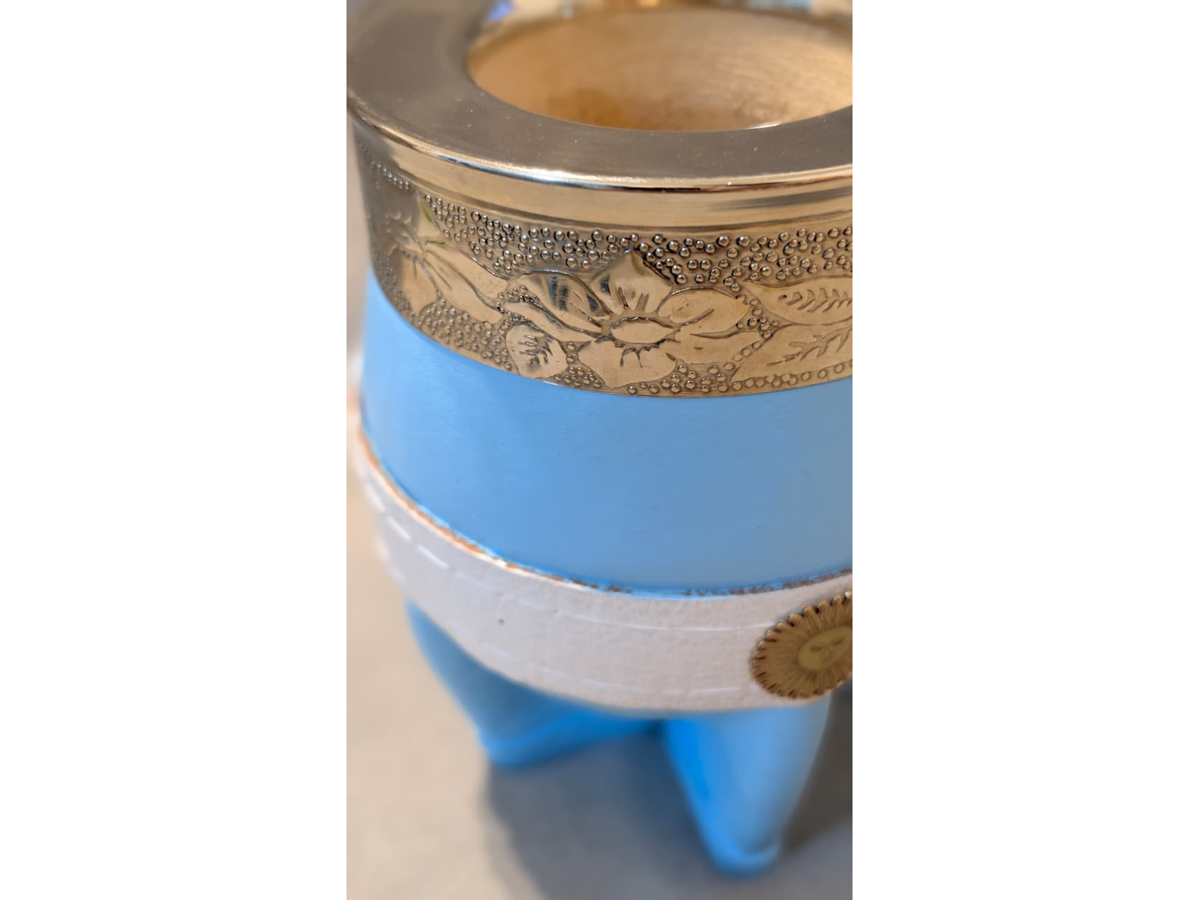 Mate Imperial 100% Alpaca Bandera Argentina Compartir por WhatsApp Copiar enlace Mate Imperial Argentina con dije de Bronce de 3 cm de diametro. Virola 100% Alpaca, 10 cm de alto.$38.250 Complementos para tu pedido Agregá items adicionales a tu pedido. Bombilla Seleccioná las opciones que quieras.Bombilla Pico Loro Pico Loro Acero Inox $4.500 Observaciones 0 / 150