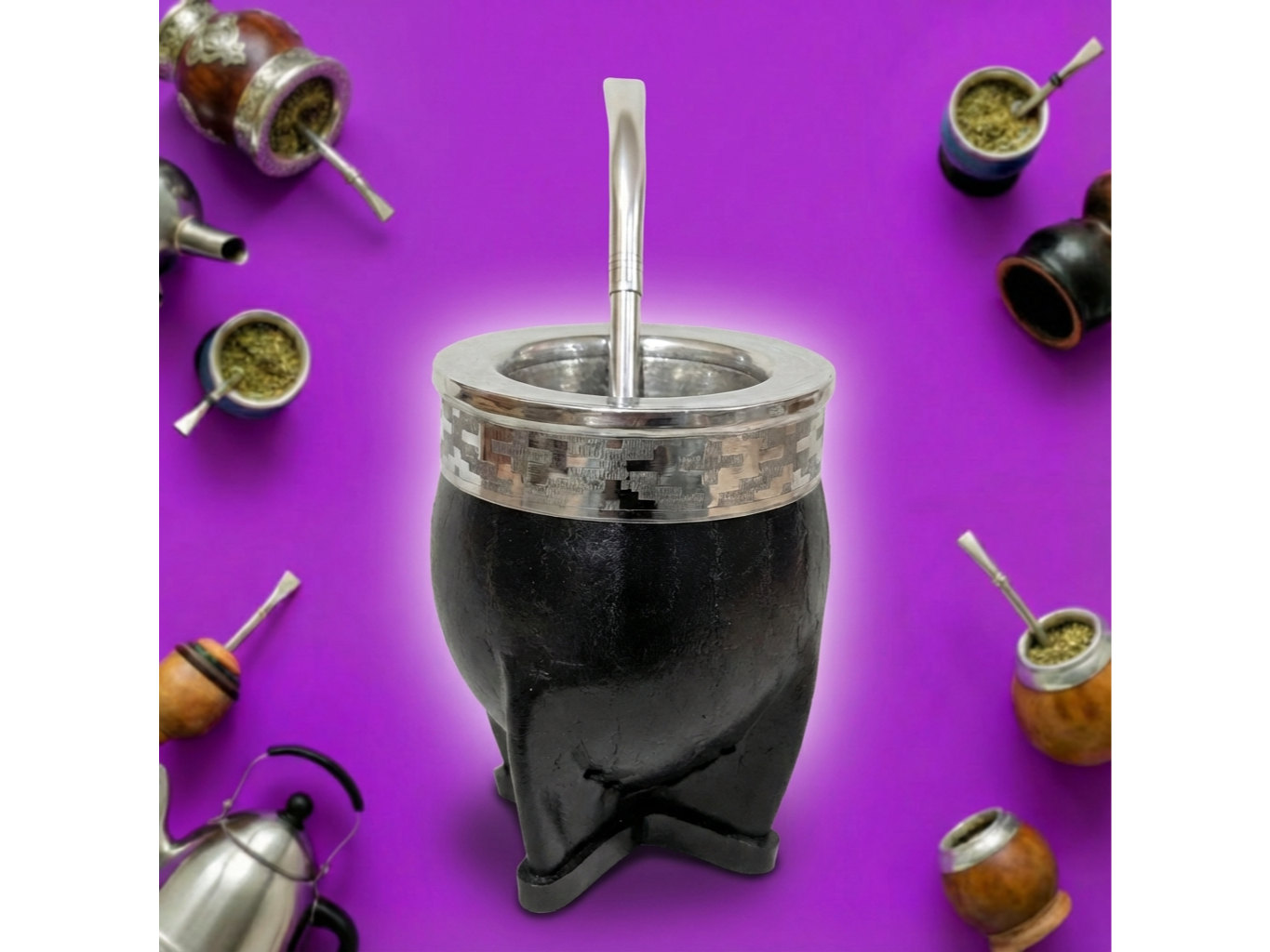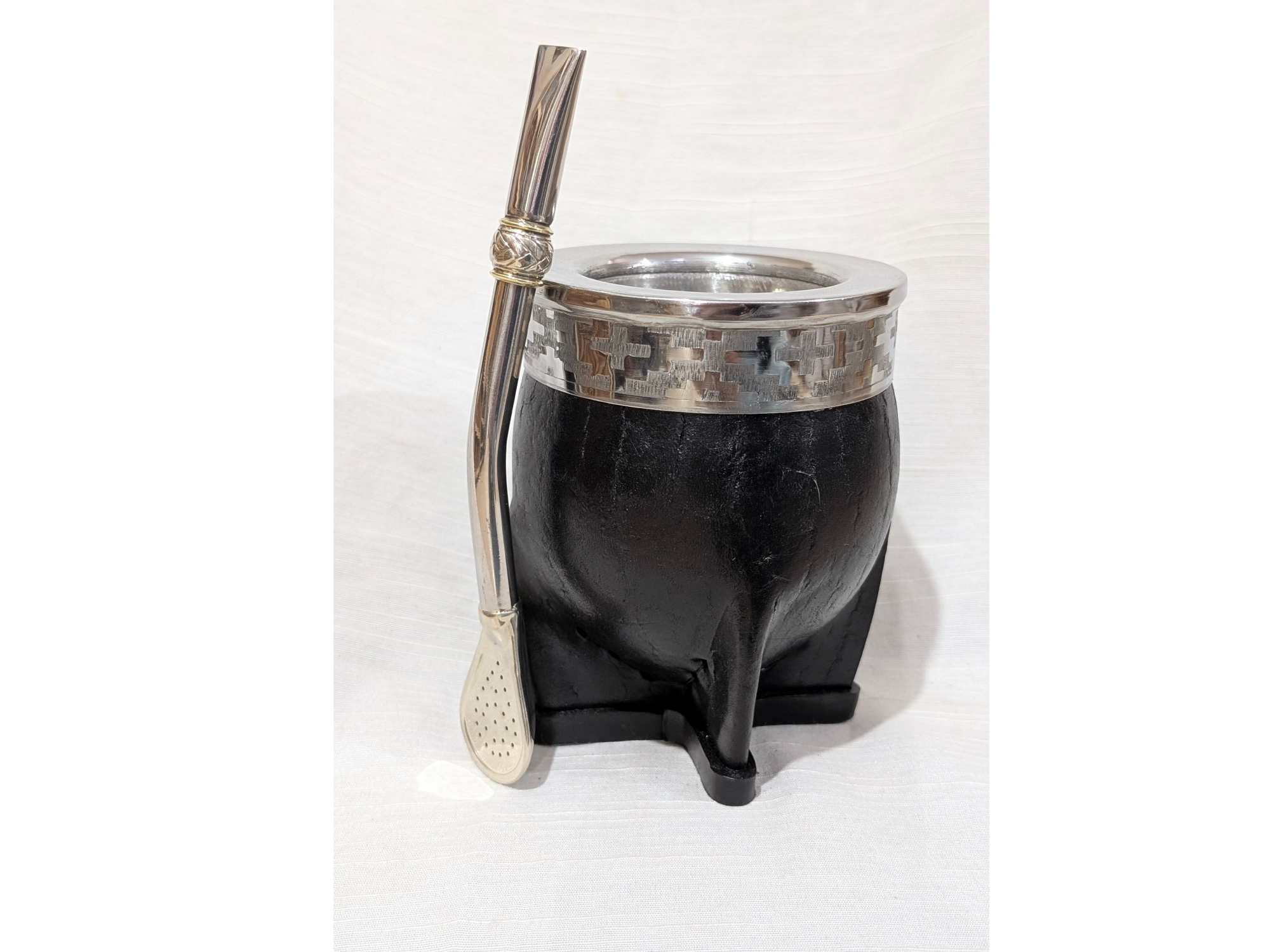 Mate Imperial de Acero medidas 12 ato x 9 ancho, capacidad del mate 200 ML, Interior acero, forrado cuero, virola acero. *PRECIO SUJETO A MODIFICACION SIN PREVIO AVISO*