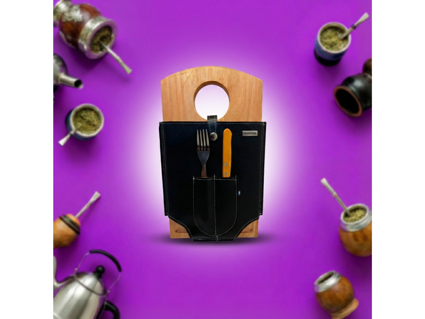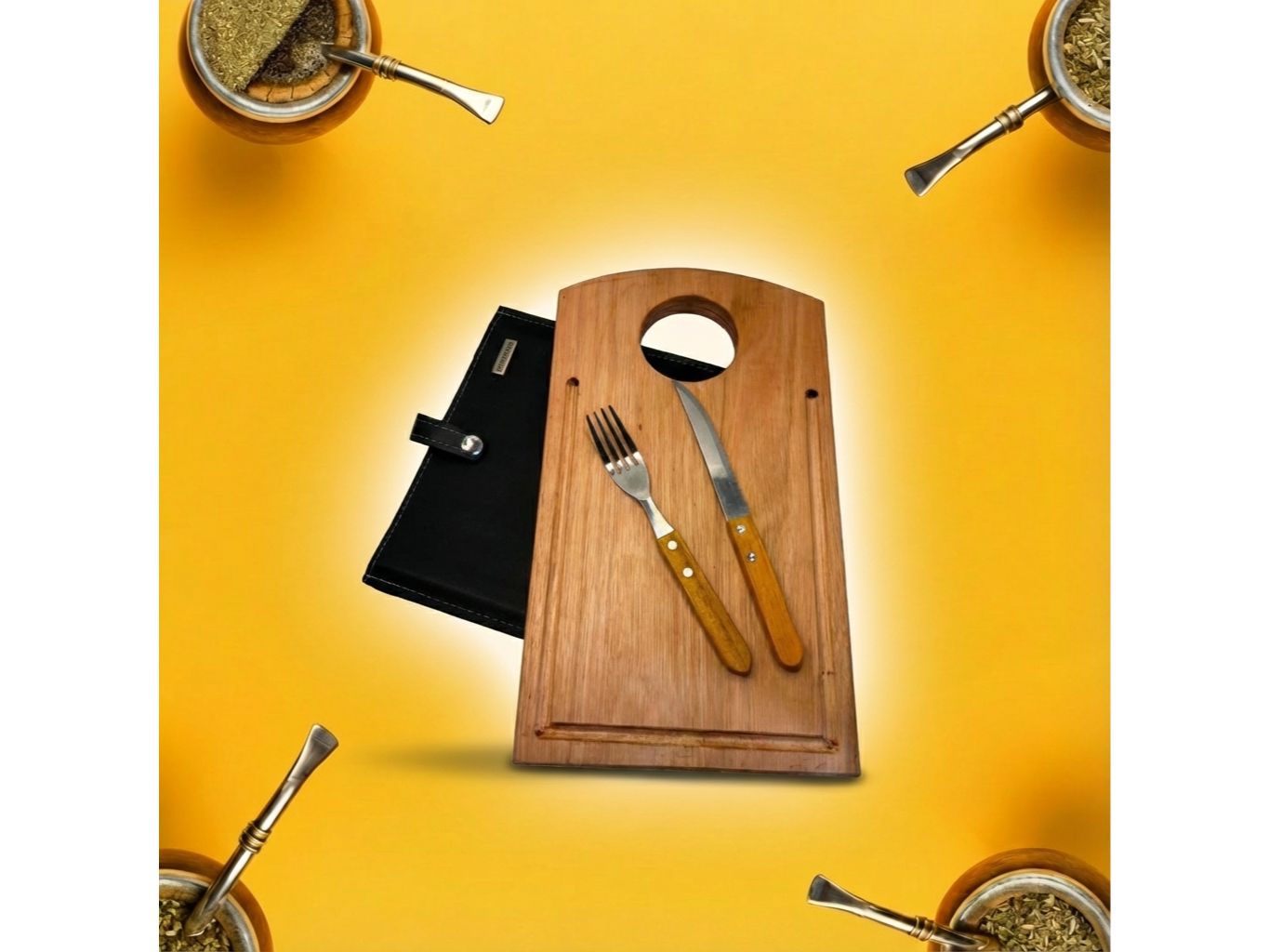 Set Asado eco Rectangular, cubiertos tramontina, estuche cuerina reforzado, tabla rectangular de 30 cm x 28cm con agarre , tablita ranurada tal cual la foto