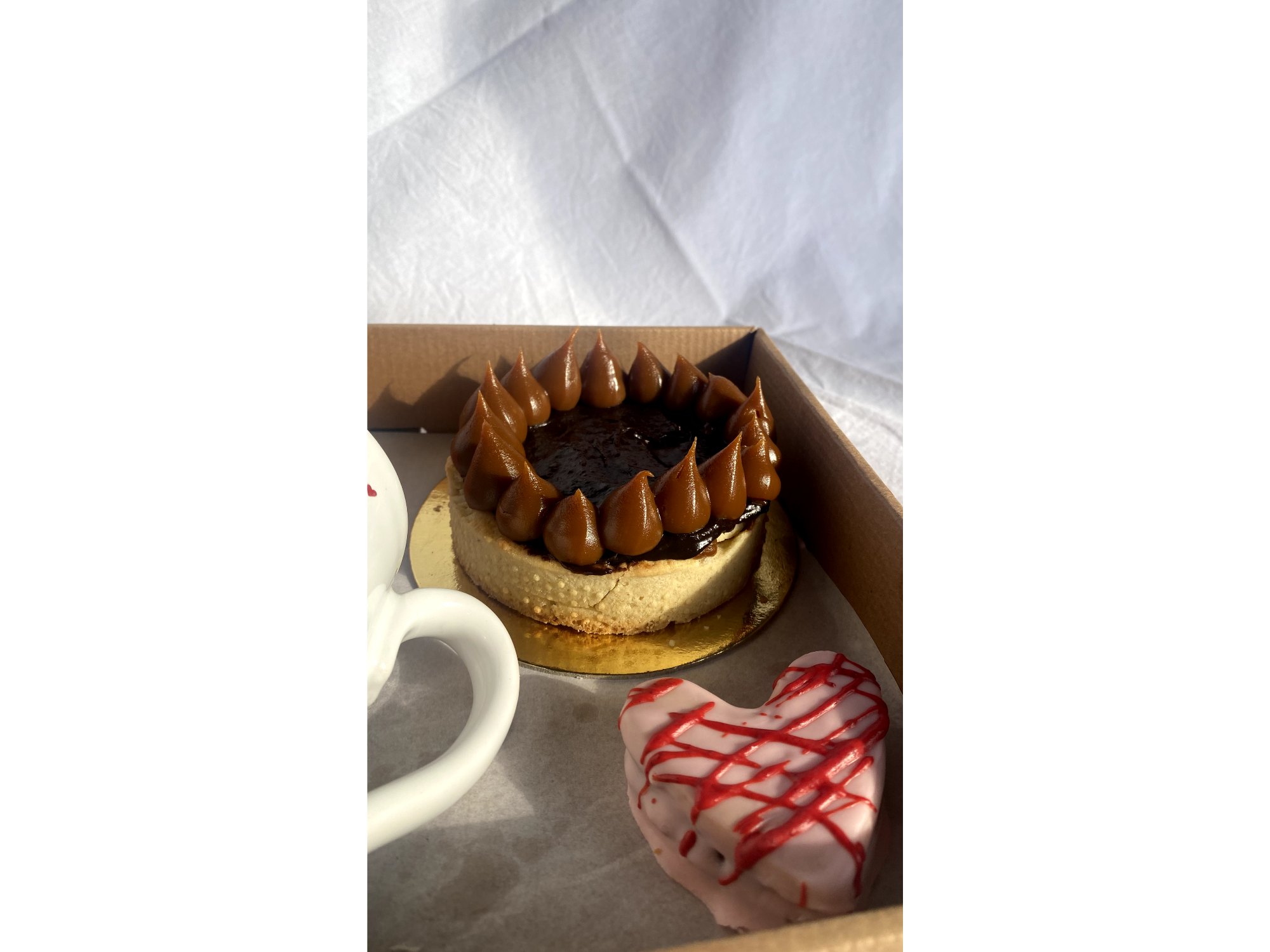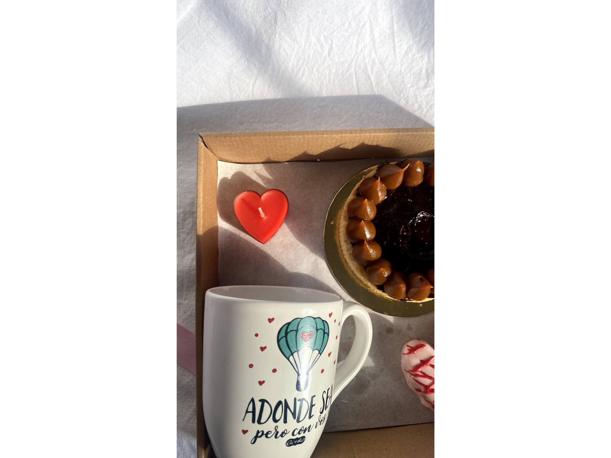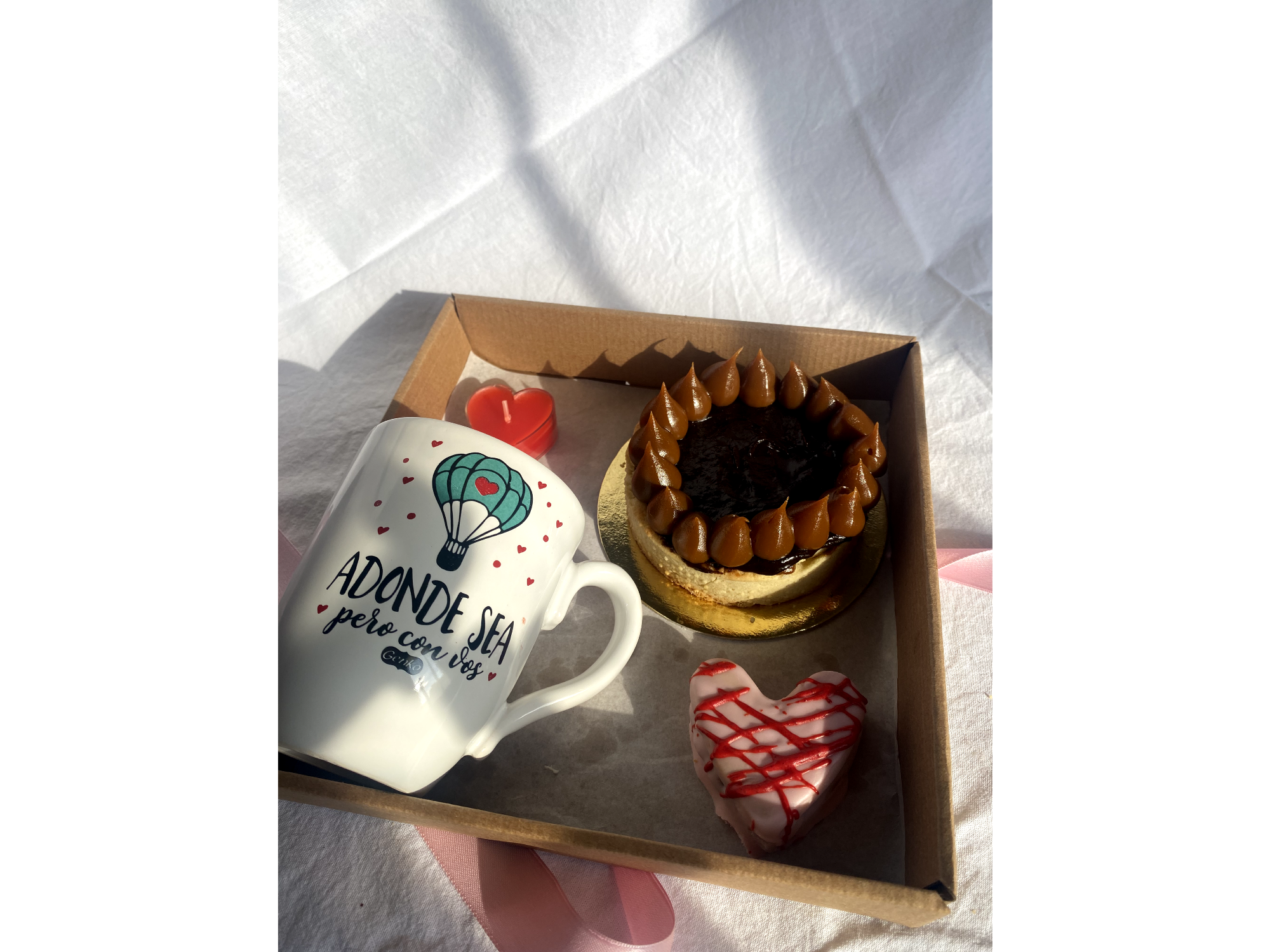 Box Corazón Cabsha Compartir por WhatsApp Copiar enlace Chocolate, dulzura y un momento para disfrutar sin apuro. Este box combina tarta Cabsha, alfajor corazón relleno de dulce de leche y cubierto de chocolate, taza y velita corazón. Ideal para regalar, compartir o armarse un ritual dulce.$25.000 Observaciones 0 / 150