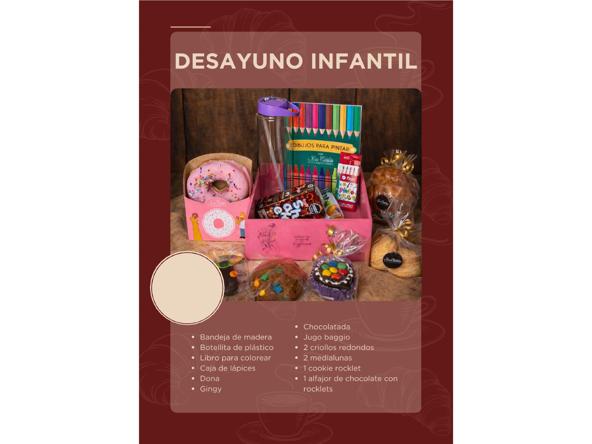 DESAYUNO INFANTIL Compartir por WhatsApp Copiar enlace Lo mejor para agasajar a alguien especial. Presentaciones Seleccioná una opción.DESAYUNO INFANTIL$34.900 Observaciones 0 / 150