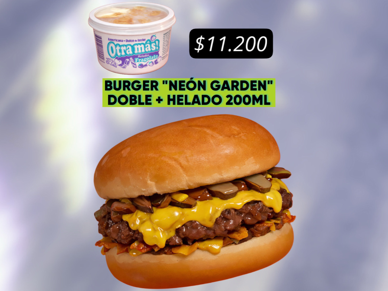 BURGER "NEON GARDEN" DOBLE + HELADO 200ML