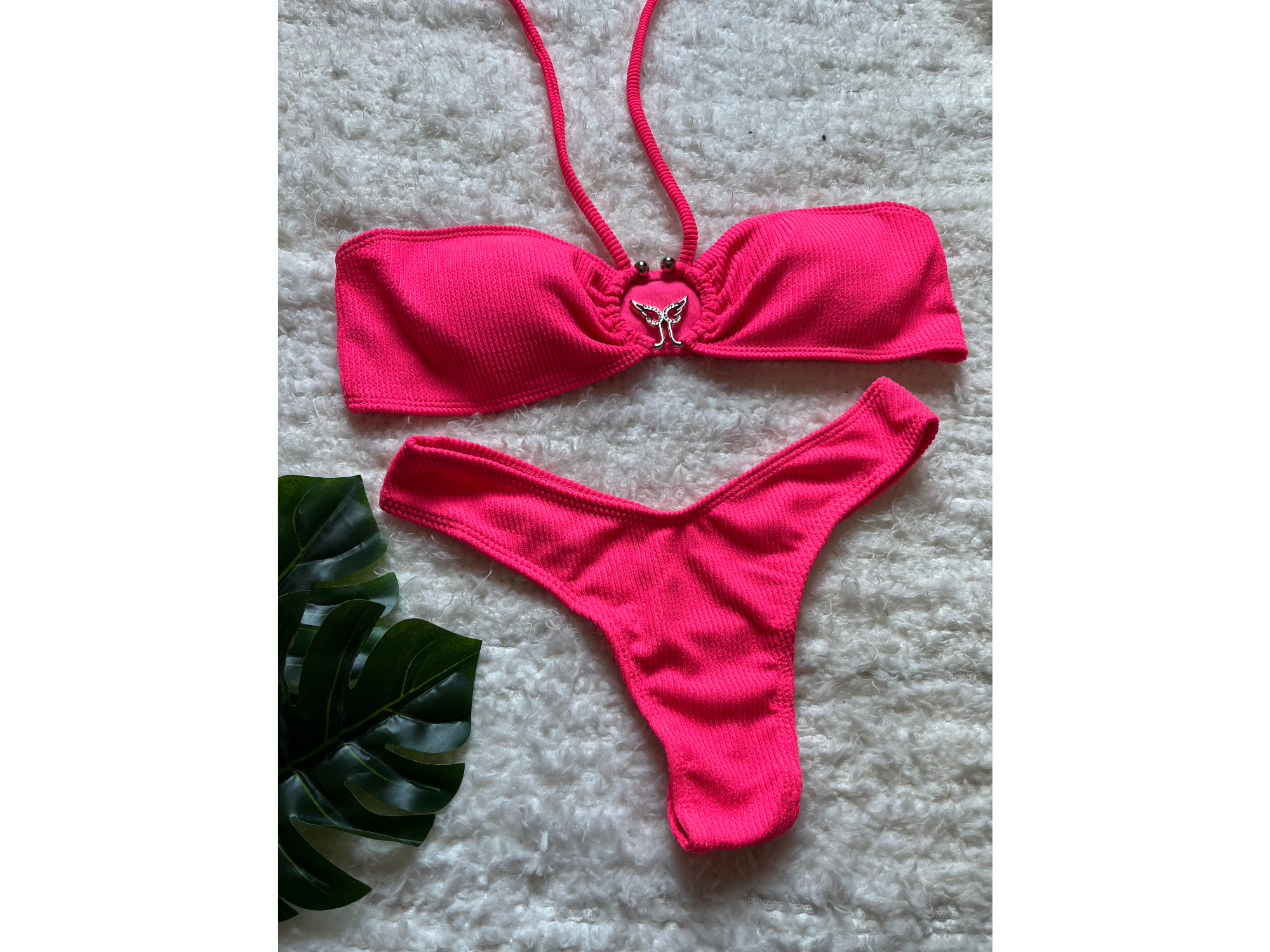 TALLE 90. FUCSIA Compartir Bikini straple con dije y Colales corte V de morley$13.000 Observaciones 0 / 150