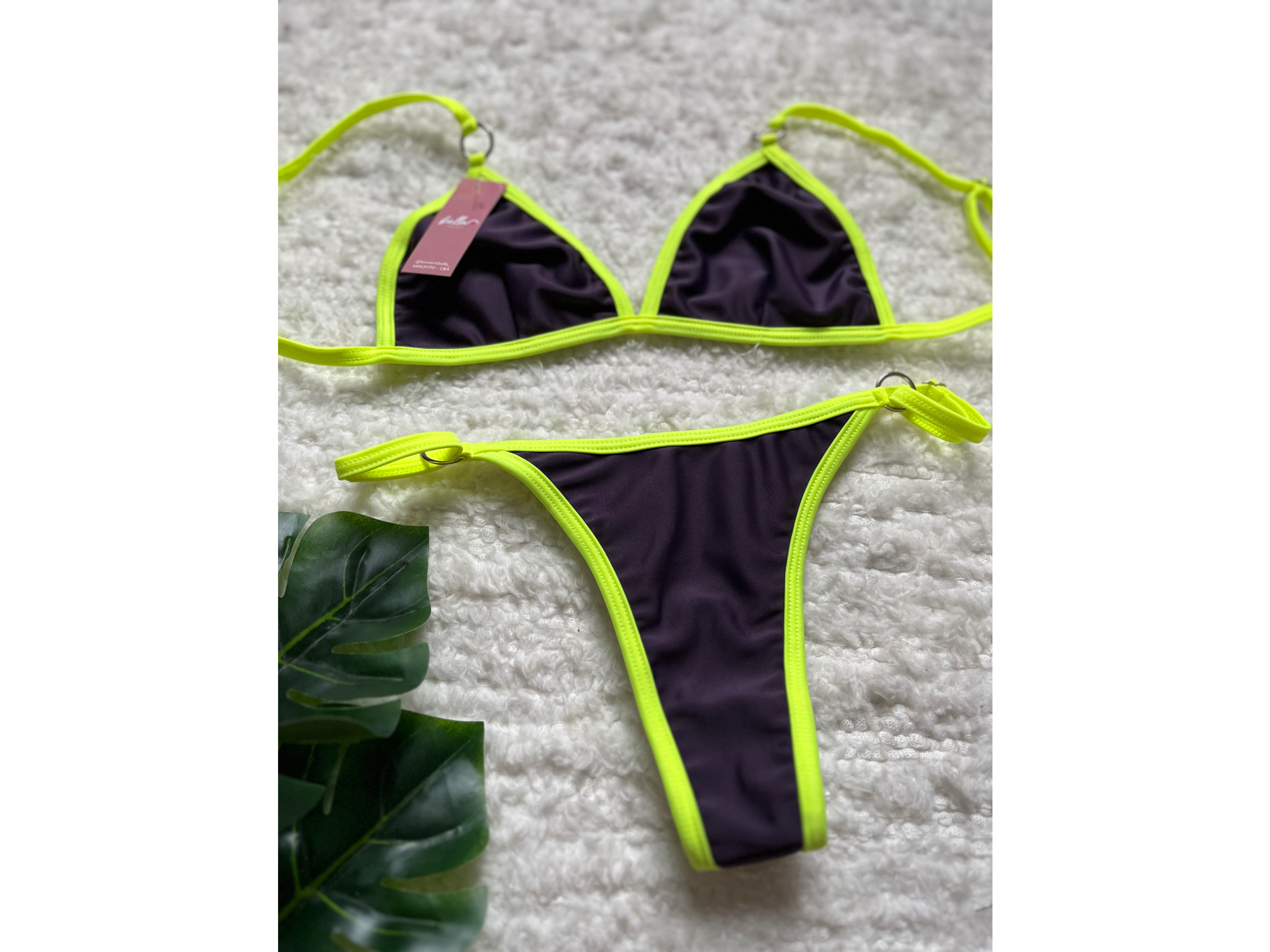 Bikini de lycra con corpiño para atar en la espalda con colales regulable.