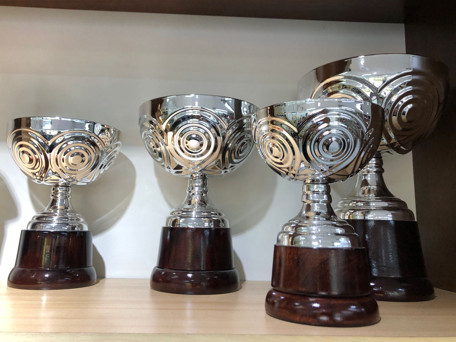 Copa metal (pueden varias las tazas de las copas) tamaños copa importada 1 / 15 cm copa importada 2/ 18 cm copa importada 3/ 20 cm copa importada 4/ 24 cm copa importada 5/ 26 cm Colores: plateado/ dorado base de madera ( redonda ) chapa en 1 cara incluida con grabado