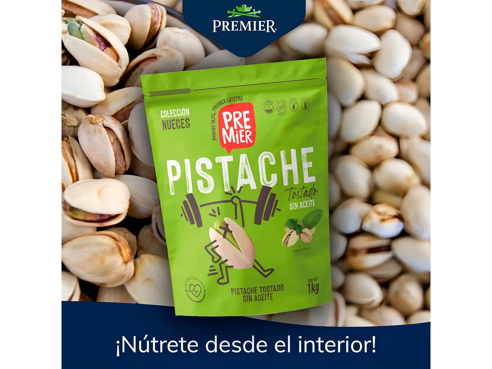 Disfruta de la máxima calidad con el Pistache Premier, un snack premium seleccionado por su gran calibre y frescura.