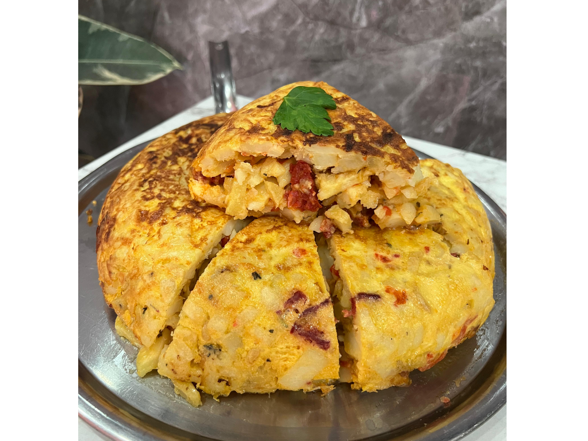 papa, chorizo colorado, cebolla, huevo, sal y orégano