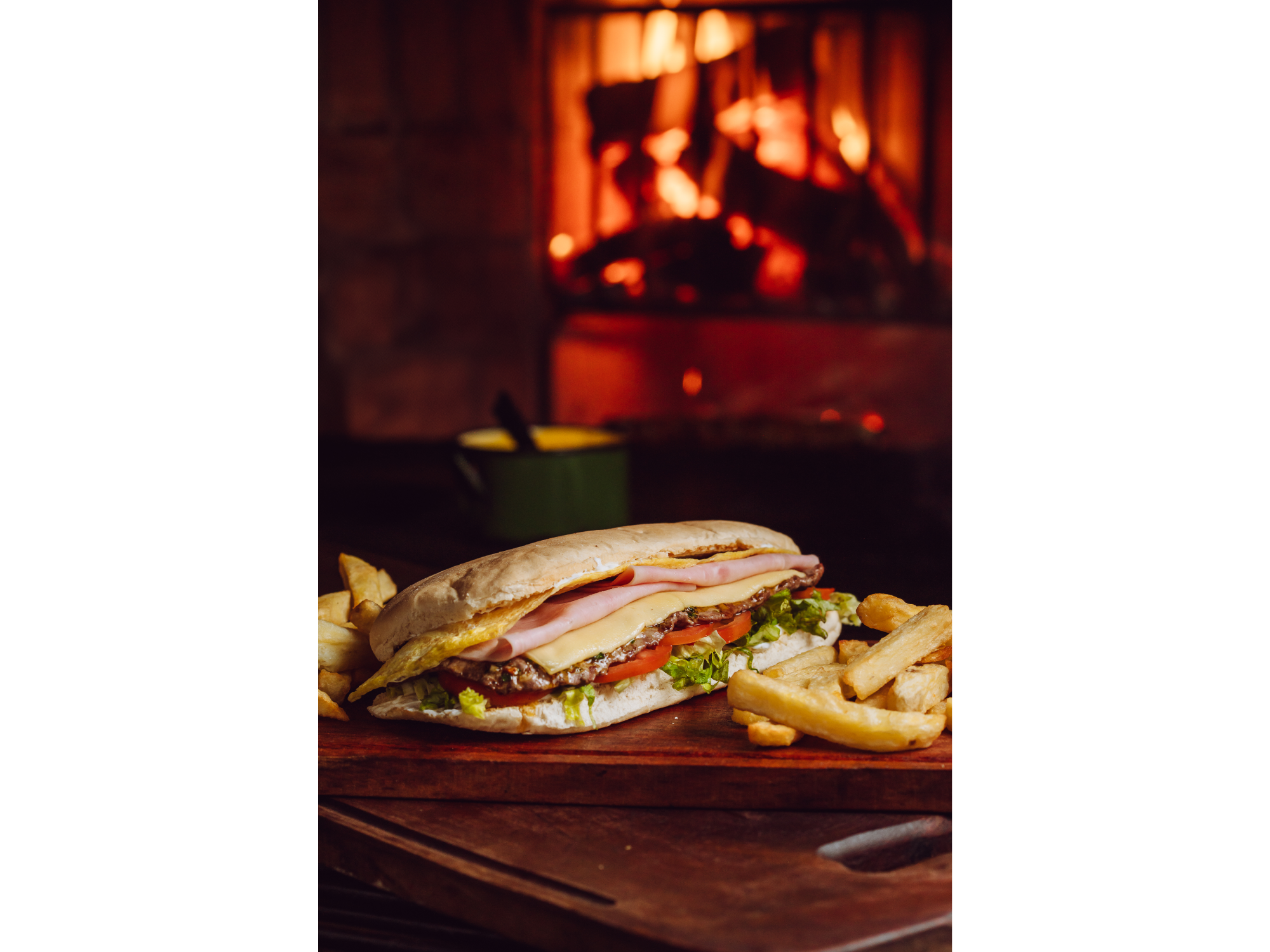 LOMO COMPLETOPan Casero - Lactonesa - Bife de Ternera - Doble Queso Tybo - Doble Jamón Cocido - Huevo a la Plancha - Tomate - Lechuga - Chimi - Papas Fritas$12.500 Complementos para tu pedido Agregá items adicionales a tu pedido. EXTRAS Seleccioná las opciones que quieras.NingunoPote de Aderezo ACLARAR: - Lactonesa - Aderezo Casero - Mayonesa común $1.000Huevo$1.000Pepinos$1.000Queso Tybo X2$1.000Bacon (panceta ahumada)$1.500Queso Cheddar en Burger$2.000Queso Cheddar en Papas Fritas$2.000Medallón de carne$2.000Bife de Ternera$2.500Cebolla Caramelizada$1.500Jamón X2$1.300Lechuga$500Rúcula$700Salsa Criolla$2.000Salsa Picante$2.000Tomate$500Tomate Cherry$2.000 Observaciones 0 / 150