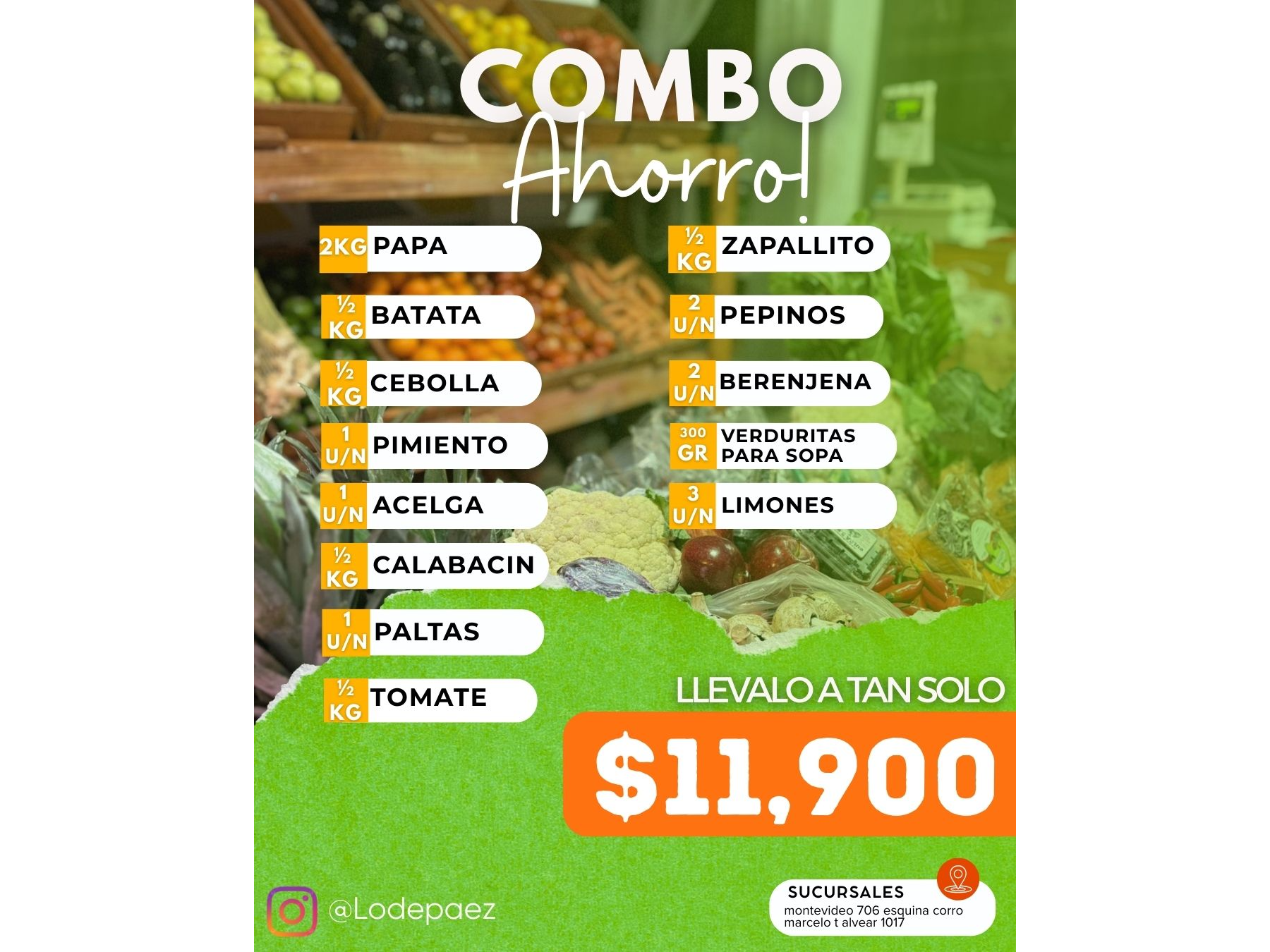 "COMBOS FRUTAS Y VERDURAS" Compartir por WhatsApp Copiar enlace Combos frutales 🍇🍎 Combos frutales 🍇🍎 (3) COMBO AHORRO! $11.900 COMBO ECONOMICO! $17.900 COMBO FRUTAL! $14.800