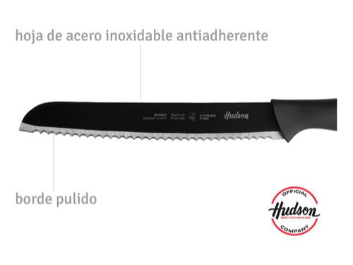 El Cuchillo para Pan Hudson BSBD08 Basic es la herramienta ideal para quienes buscan precisión y comodidad al cortar pan. Su hoja de acero inoxidable de 19 cm garantiza un corte limpio y eficiente, preservando la textura y frescura de tus panes en cada uso.
