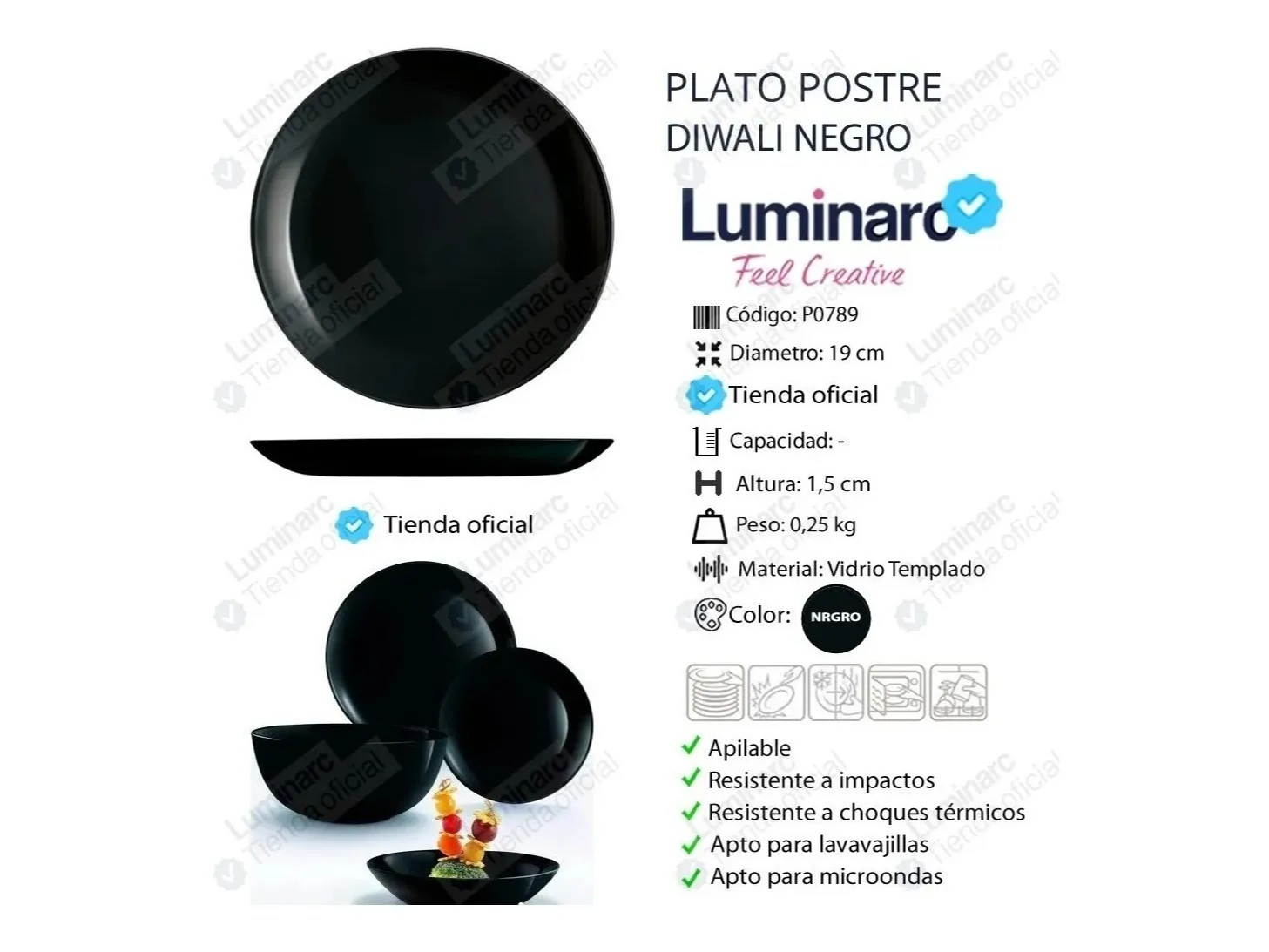 PLATO POSTRE VIDRIO TEMPLADO DIWALI LUMINARC NEGRO x 6 UNIDADES Compartir por WhatsApp Copiar enlace $36.000 Observaciones 0 / 150