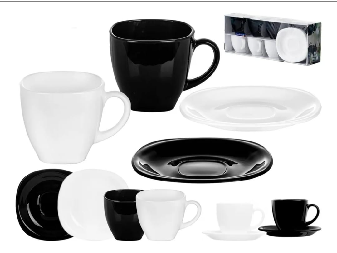 TAZA TE + PLATO x 6 UNIDADES VIDRIO TEMPLADO CARINE LUMINARC Compartir por WhatsApp Copiar enlace El set contiene 3 tazas negras + 3 tazas blancas + 3 platos negros+ 3 platos blancos$72.000 Observaciones 0 / 150