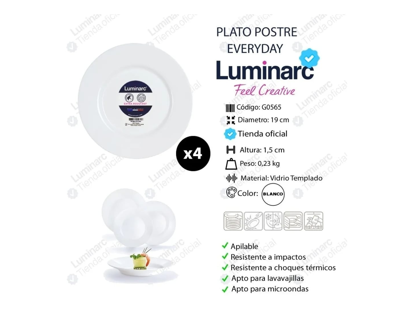 PLATO POSTRE VIDRIO TEMPLADO EVERYDAY LUMINARC 19 CM BLANCO Compartir por WhatsApp Copiar enlace $31.000 Observaciones 0 / 150