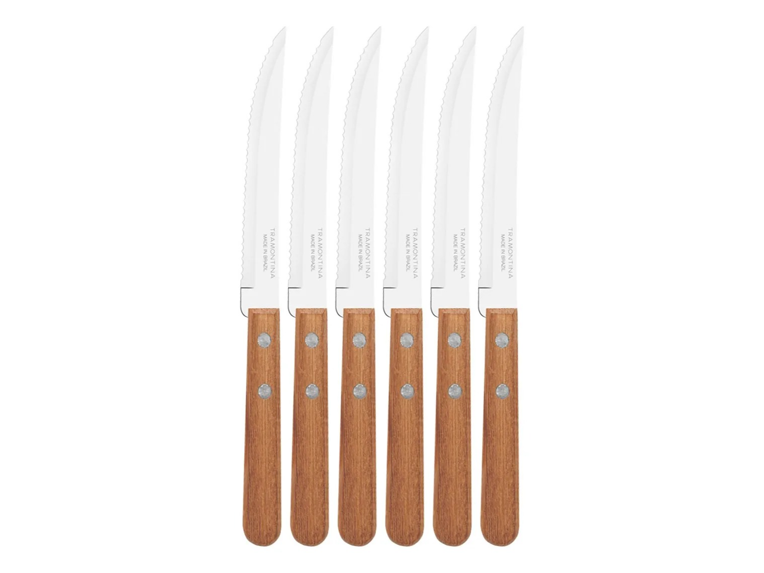 CUCHILLO MESA TRAMONTINA DYNAMIC x 6 UNIDADES Compartir por WhatsApp Copiar enlace La línea Tramontina Dynamic con Láminas de Acero Inoxidable y Mangos de Madera Natural .. es ideal para el día a día. Son piezas fabricadas con la calidad y buen gusto de los cubiertos Tramontina. Prácticos y funcionales, se fabrican con láminas de acero inoxidable, que los hacen mucho más resistentes y durables. Con los mangos de madera natural, garantizan un visual rústico y lleno de estilo a la hora de servir. Garantiza el tuyo y lleva mucho más estilo a tu mesa.$24.000 Observaciones 0 / 150