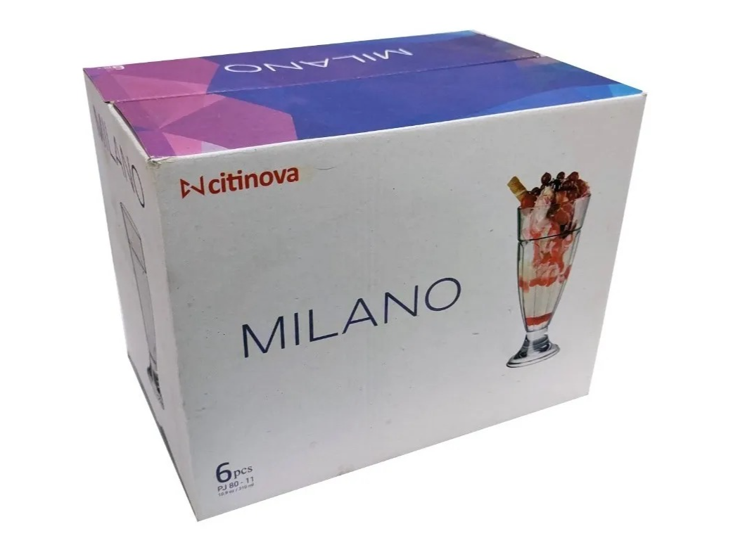 COPA HELADO VIDRIO MILANO 310 ML x 6 UNIDADES Compartir por WhatsApp Copiar enlace - Material: Vidrio Grueso de Alta Calidad - Medidas: 18,5 cm (alto) X 8 cm (Diámetro Boca)$29.000 Observaciones 0 / 150