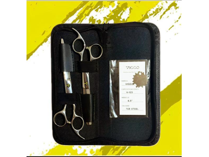 Kit Tijeras 6,5" VIGGO V-1231 estuche linea Viggo con: *Tijera filo navaja 6,5" acero inoxidable de alta resistencia *Tijera pulir 6" acero inoxidable de alta resistencia *PARA DIESTRO$72.000 Observaciones 0 / 150