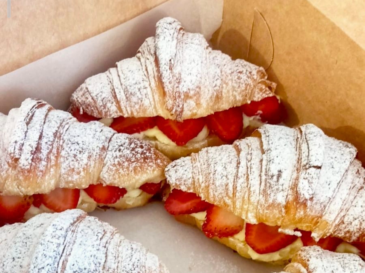 Croissant de Frutillas y Crema Compartir Croissant relleno de crema pastelera y láminas de frutillas y una lluvia de azúcar impalpable. El balance perfecto entre frescura y dulzor en cada bocado. 🍓$3.500 Observaciones 0 / 150