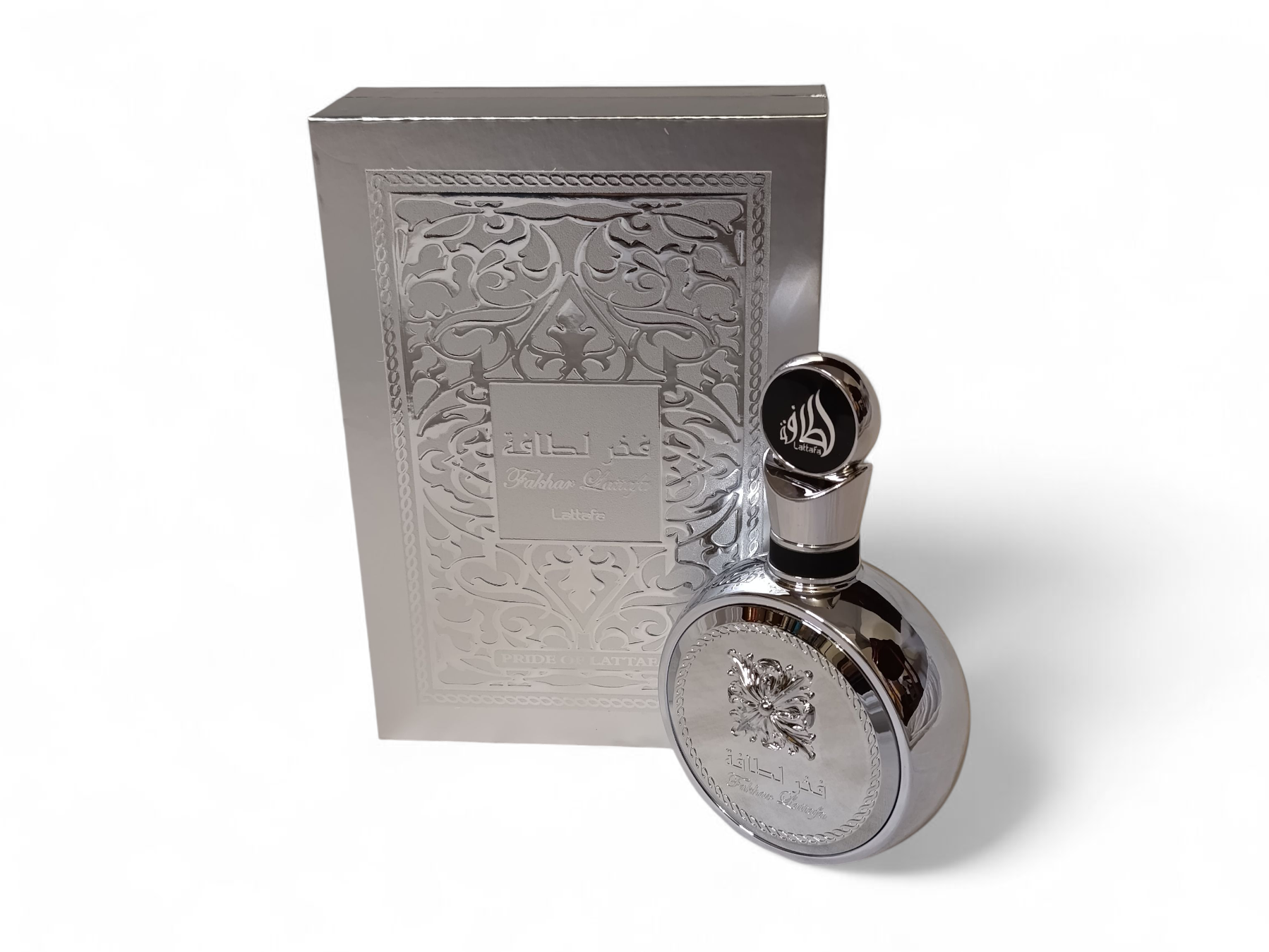 Lattafa Fakar Platinum ofrece una muy buena duración, generalmente perceptible en la piel por 7 a 9 horas.