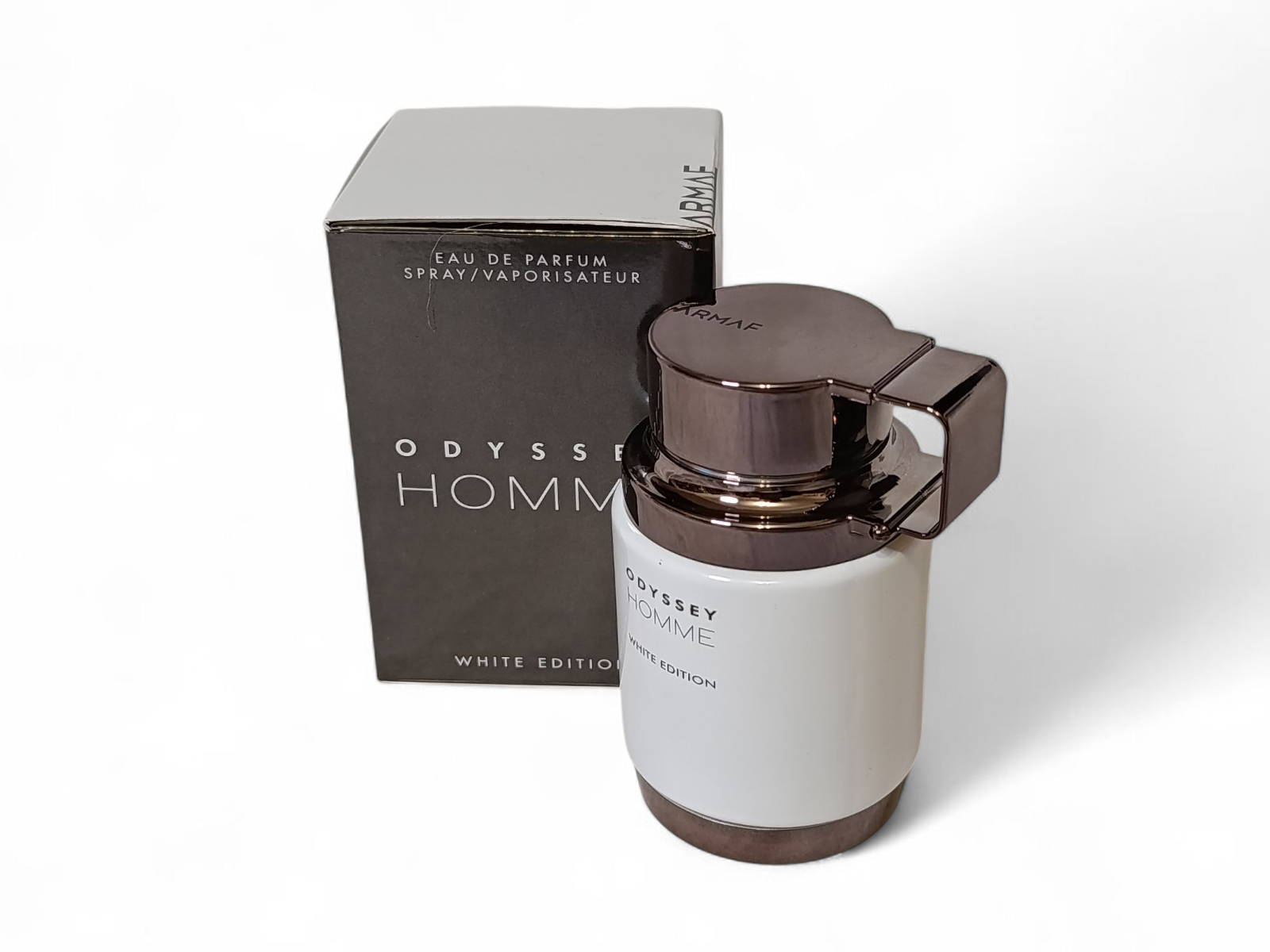 Lattafa Odyssey Homme White Edition ofrece una muy buena duración, generalmente perceptible en la piel por 7 a 9 horas.