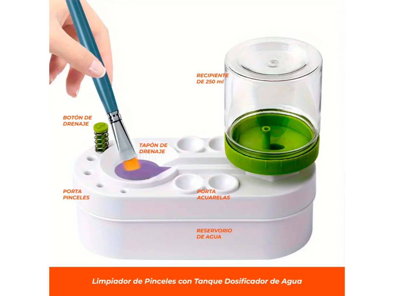 • Fabricado en plástico resistente: Su modelo dosificador de agua facilita el enjuague de pinceles, permitiendo un flujo controlado de agua para una limpieza más efectiva.