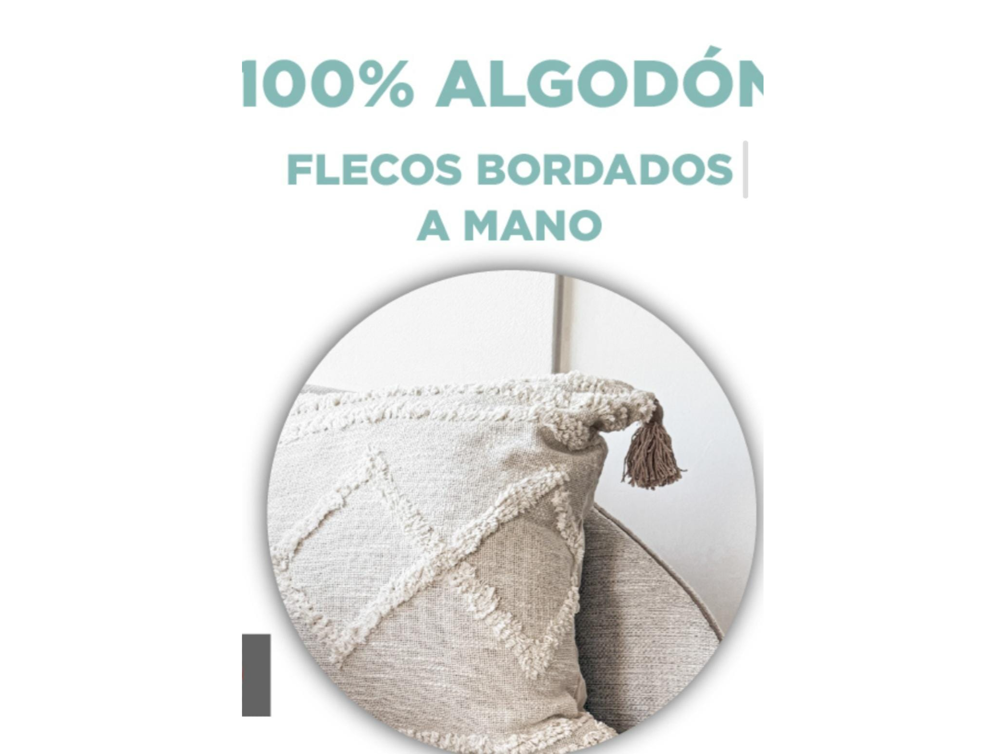 Cover I Kali Queen Compartir Última unidad Línea premium Color Natural Base rústica con mucha textura bordado a mano con flecos Medida: 260x245 cm Con 2 fundas 45x45 cm con cierre y borla.$178.000$160.000 10% OFF Observaciones 0 / 150