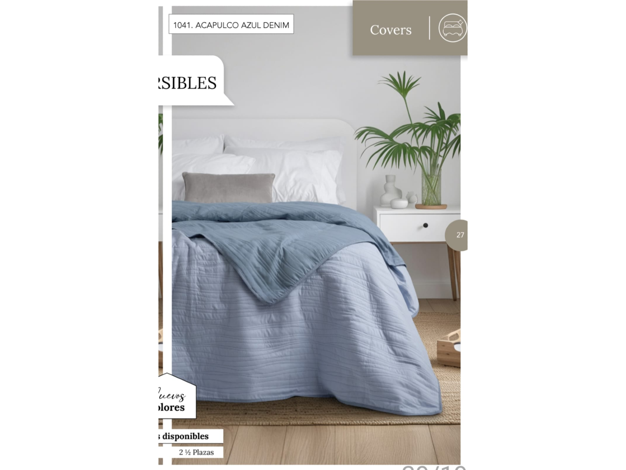 Cover Acapulco 2 1/2 Plazas Compartir 2 unidades en stock Cover bitono Medida 220x240 cm Color Uva y Azul Demin 100% Poliéster$58.000$52.100 10% OFF Observaciones 0 / 150