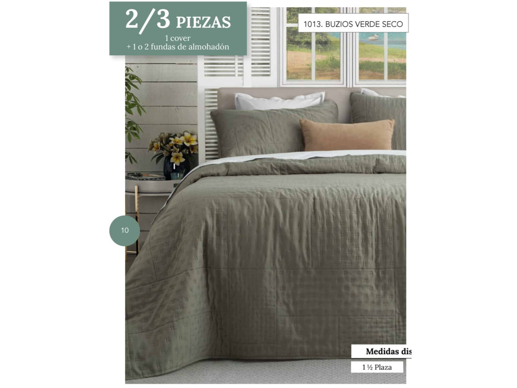 Cover Kit Buzios 2 1/2 Plazas Compartir 3 unidades en stock 1 Cover 220x240 cm 2 Fundas de almohadón de 70x50 cm 100% Poliéster Colores Verde Seco, Azul Índigo y Arena$61.000$54.900 10% OFF Observaciones 0 / 150