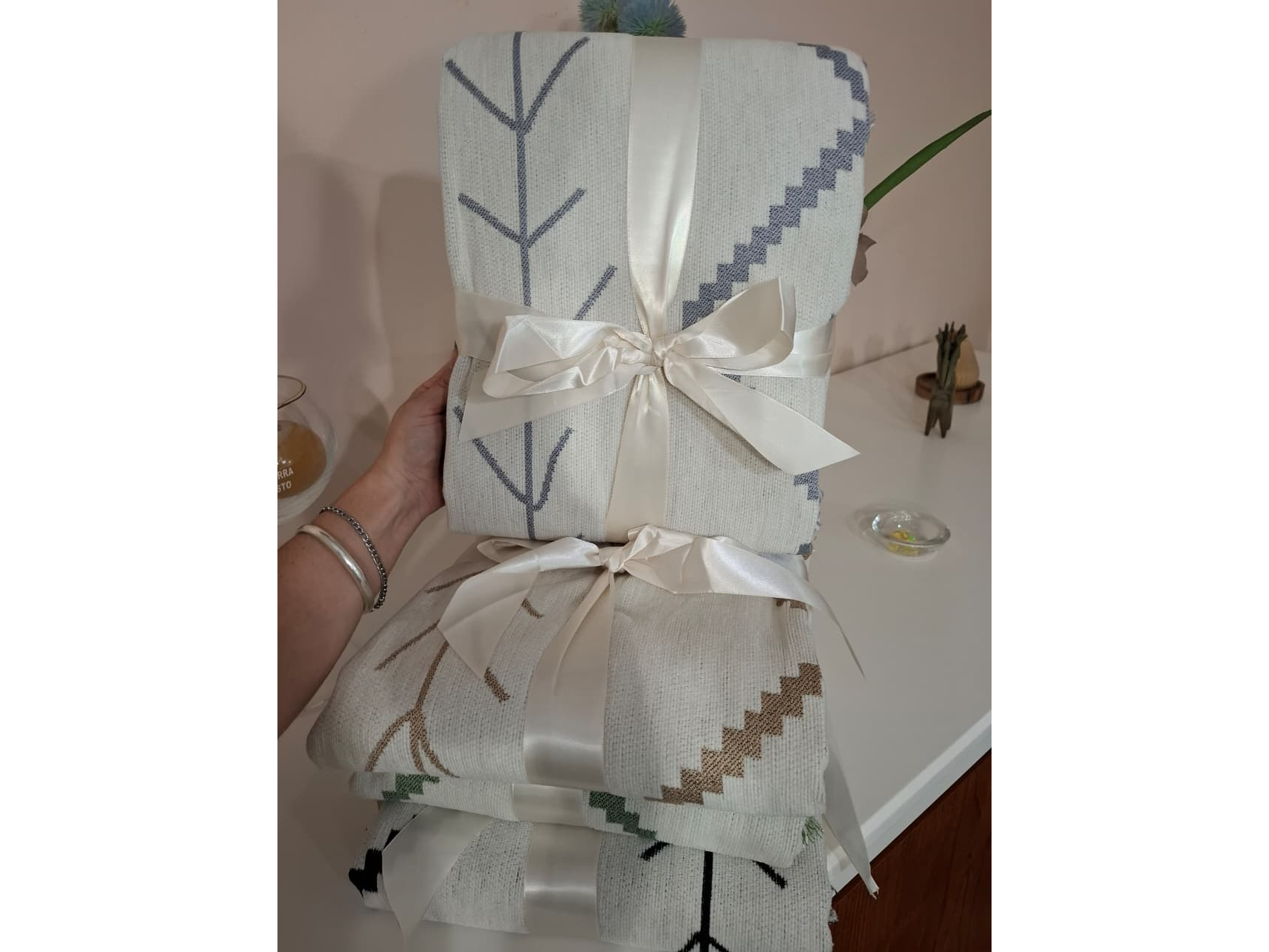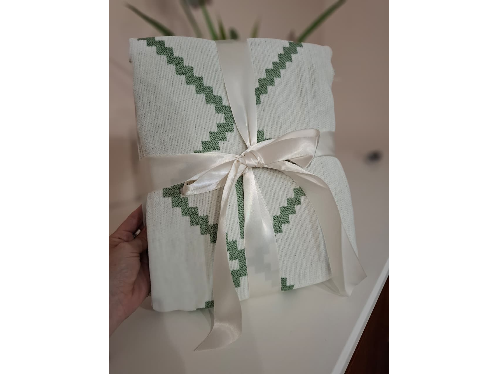 MANTA TERRA Compartir Última unidad Manta liviana de chenille jacquard con motivos étnicos Medidas: 150x120cm Colores: rombo verde, rombo visón, rombo gris y rombo negro$31.600$28.400 10% OFF Observaciones 0 / 150