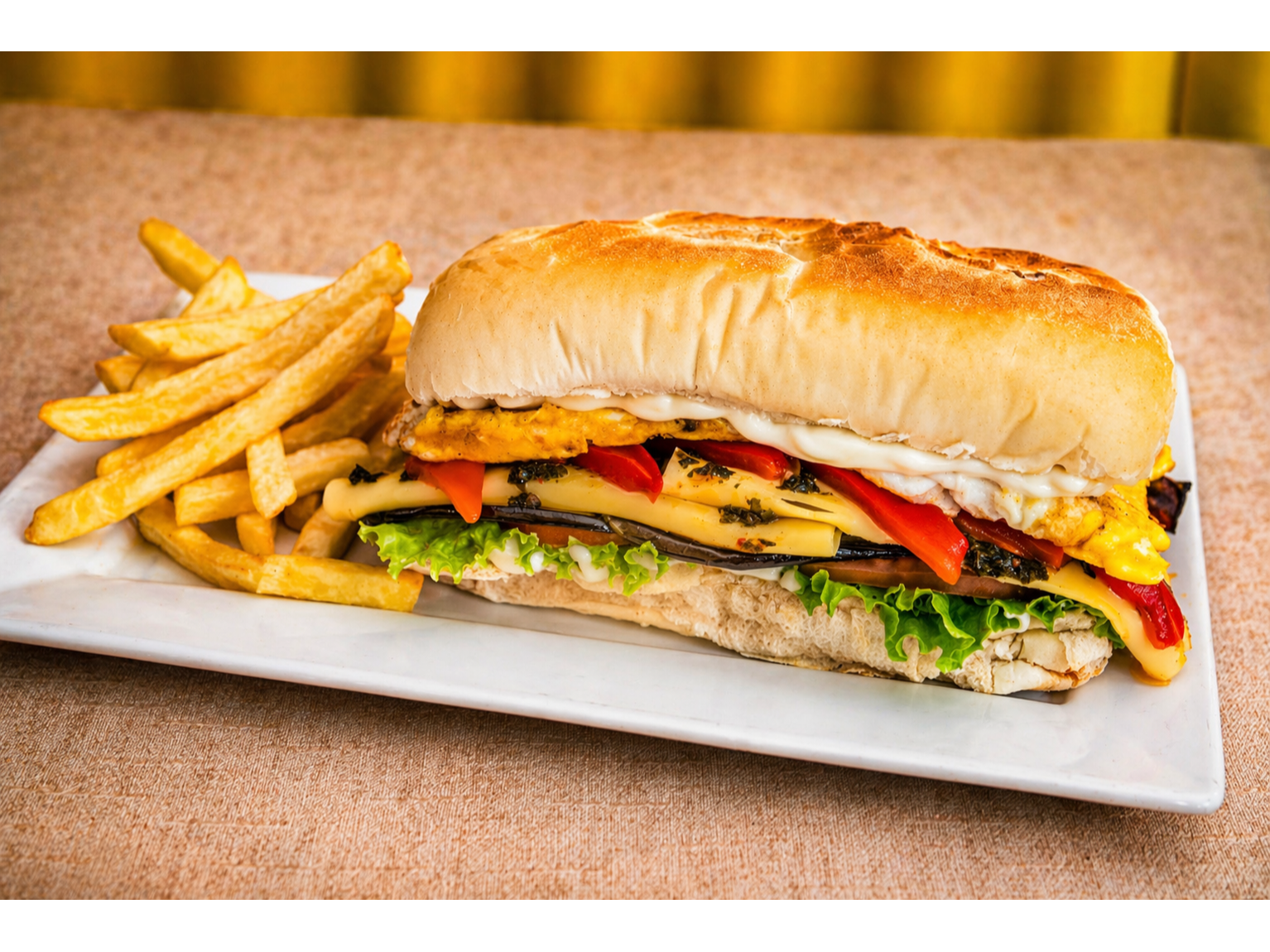 Lomo Mariachi Vegetariano Clásico (16cm) Compartir por WhatsApp Copiar enlace Pan de lomo, Berenjena Grillada, Pimientos en conserva, Huevo, Tomate, Lechuga, Queso Crema, Mayonesa Curry + Papas Fritas$13.600 Complementos para tu pedido Agregá items adicionales a tu pedido. Extras Seleccioná las opciones que quieras.Cazuela Chimi$1.100Cazuela Mayonesa$1.100Cazuela Mixta (mayo/chimi)$1.100 Observaciones 0 / 150